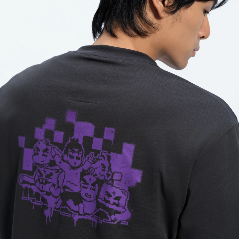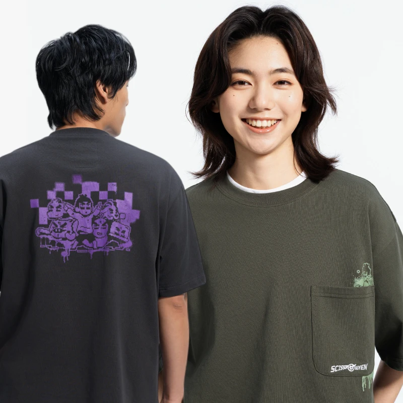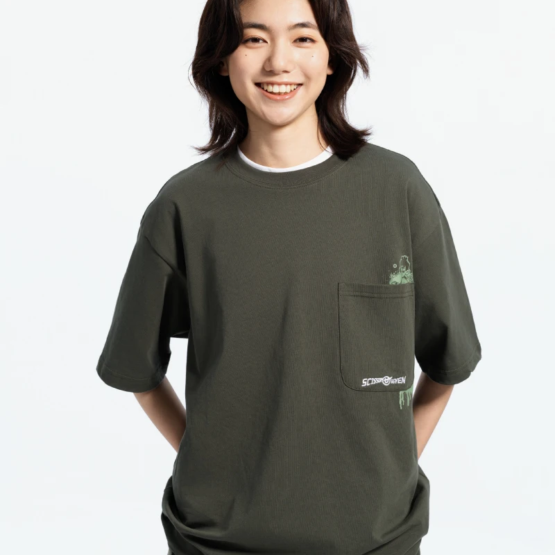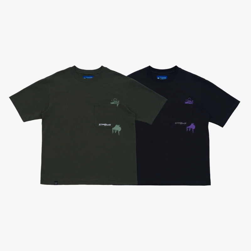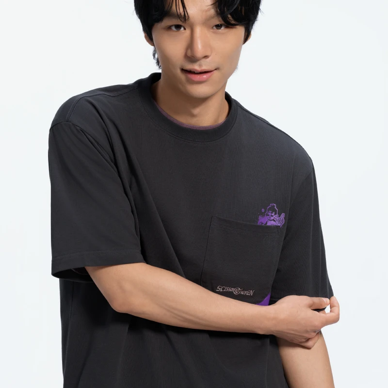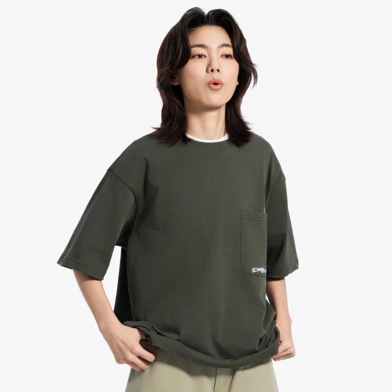 短袖口袋T恤选用210g双股精梳棉,含100%长绒棉,穿着更加舒适。 斜纹组织布面肌理清晰立体,经液氨整理后形成微弹记忆骨架,多次水洗衣就能非常好的保持廓形,兼顾挺阔度与体感舒适。 前胸贴袋运用复合工艺:口袋高密绣花logo结合阿七高目数丝网印刷,体现不同层次感。 后背整体图案造型解构为像素质感。 版型延续美式箱型剪裁,微落肩,提升整体活动量并保持当下流行元素。