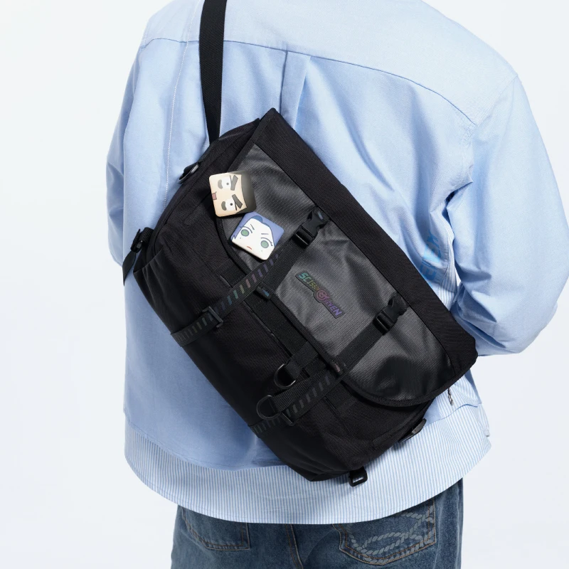 以实用和功能性为主的多功能邮差包是我们设计的初衷,让每位”刺客“在日常任务中,为我们提供更多的主力。 包包正面反面采用不同面料的拼接,提升整理的层次感。 整体包身拥有超大容量,可放下各种装备。 在包身织带部分添加了炫彩反光条,为夜间“任务”(通勤)提供了更多的安全性。 包内也有多个分层隔间,更加容易寻找物品。 肩膀部分添加定制护肩,提升了整体的舒适度。