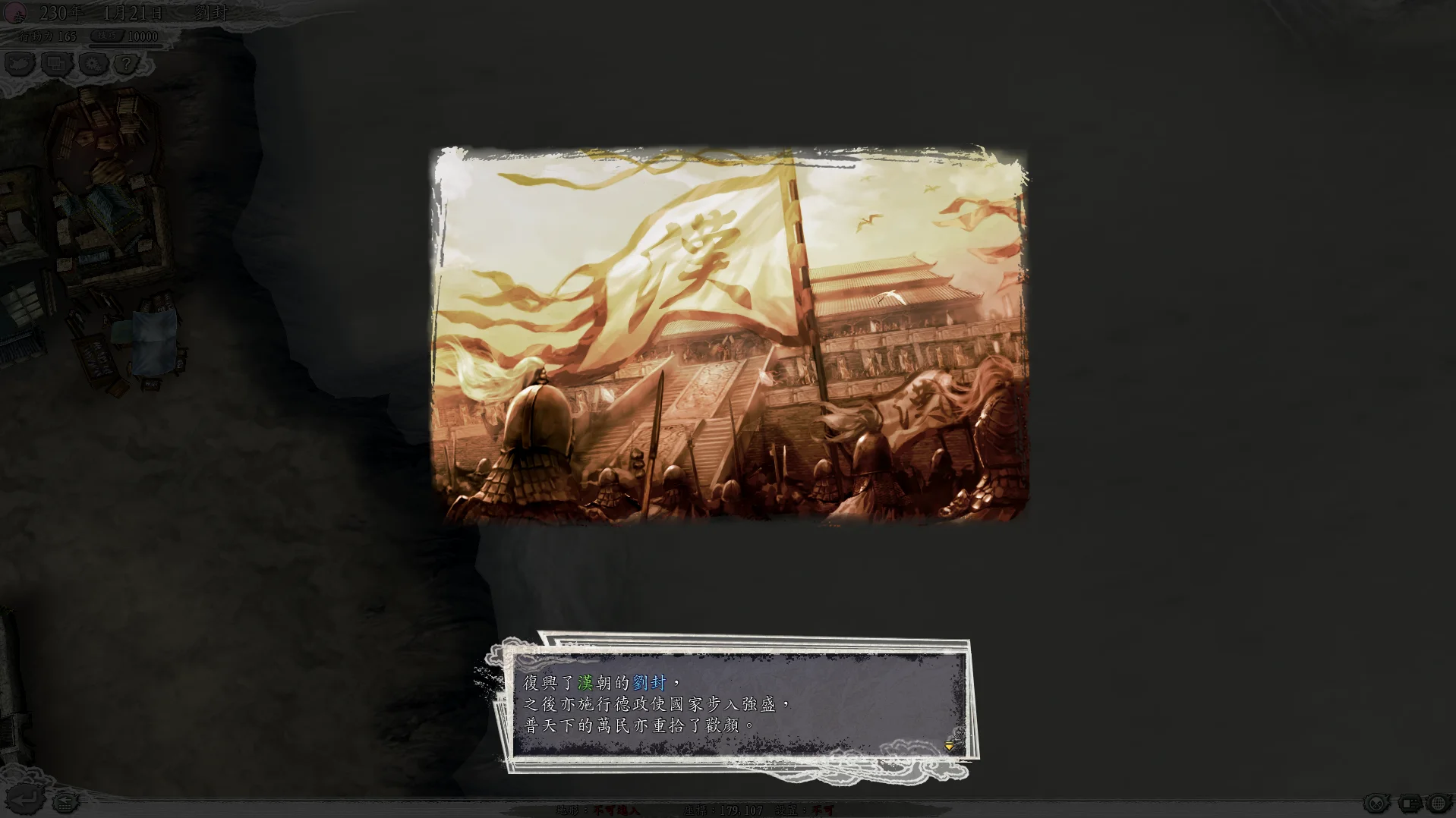 终于是把三国志11从头到尾完整通关了一回,刘备入蜀剧本,难度整体来说是最低的,但仍然从 211 年打到了 230 年,游戏世界可谓是沧海桑田,现实世界也是耗费了几十个小时,最终解锁了汉室复兴结局。个人感觉还是很值得的,一是游戏精心设计的机制,让游戏整体的难度曲线保持在一个固定值上下,不至于前期太难,后期又太简单,总是让我充满挑战欲与成就感;二是游戏内各种巧妙的随机事件,总能让我在漫长的攻伐中感到疲惫时又眼前一亮,重新打起精神,唤醒我的游戏兴致;三是通篇体验下来三国志11的剧本,让我对 SLG 游戏的理解与境界都可谓是上升了好几个档次,就像一个三流菜鸟捡到了传说级武功秘籍直接飞升到先天境界一般。