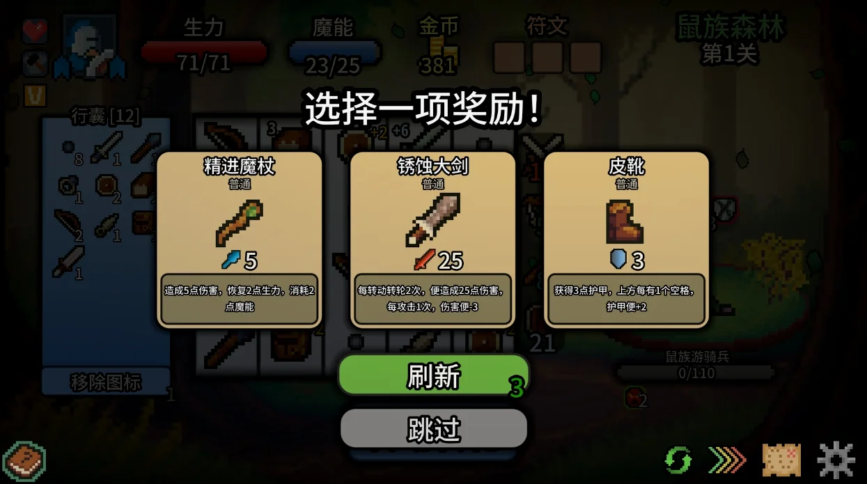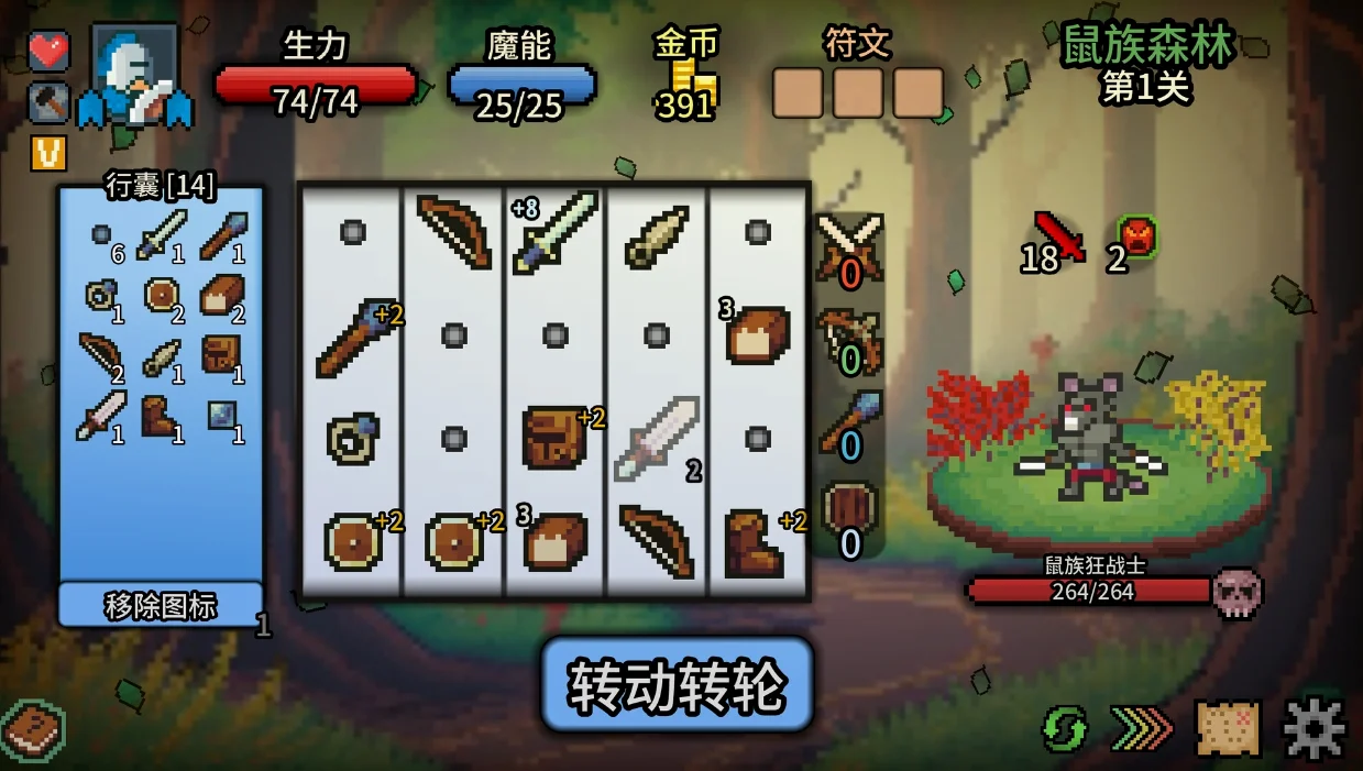 在游戏的玩法上,前进的方式有点像杀戮尖塔,不断的进行爬塔(不过是横向的),选择分叉的路口,然后跟boss对战,而战斗方面,就有点像幸运房东了,一个老虎机,是生是死,全看运气了,这也是游戏最核心的玩法,毕竟游戏的名字就叫拉杆英雄,我也看到有很多兄弟讨论平衡性的问题,不过我个人感觉,既然都靠随机性的拉杆来决定生死了,那么平衡好像也不那么重要了。