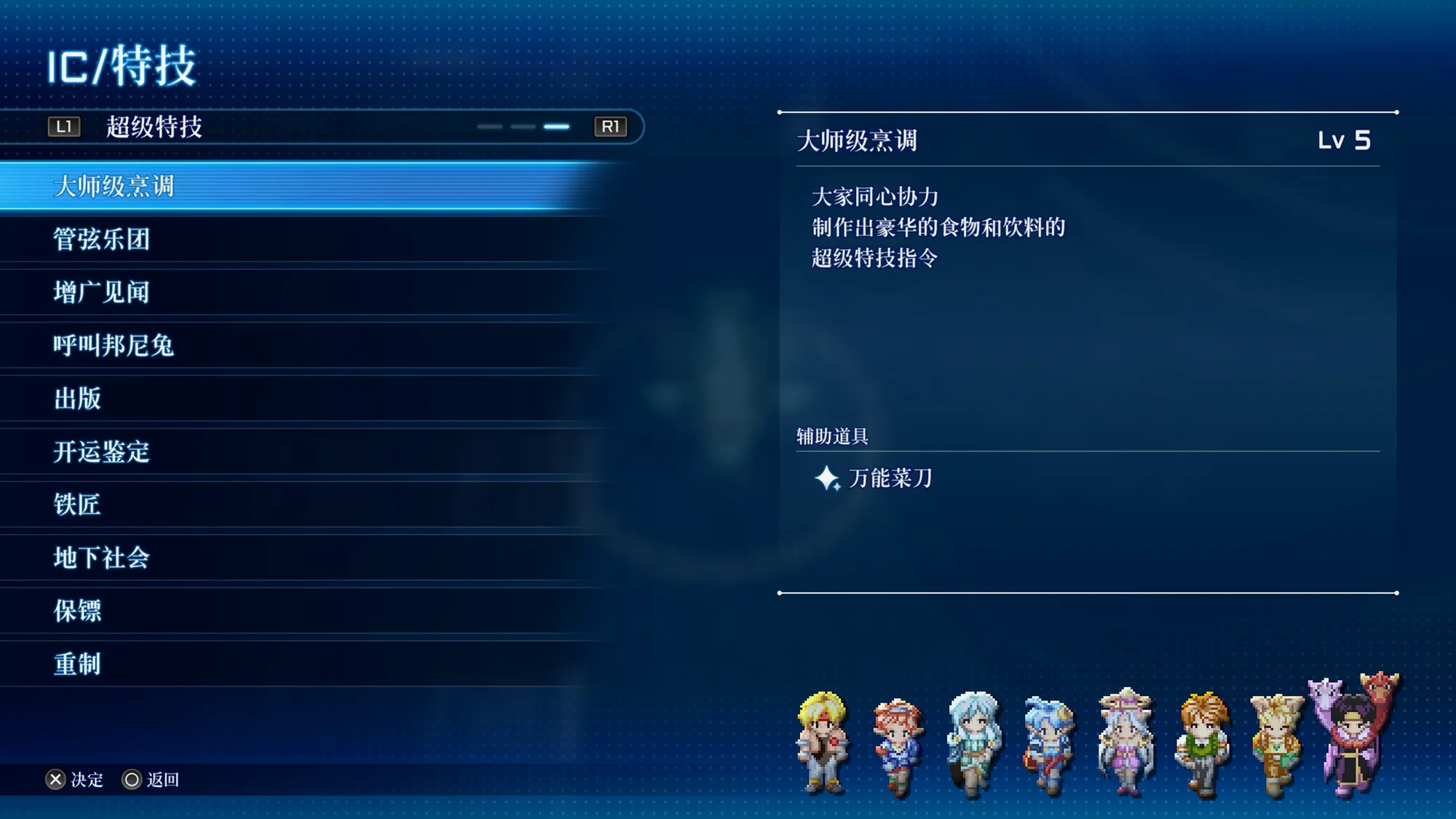 星海2白金完结,这代重制的真不错,有很多极度人性化的改动。整个流程玩下来,印象最深的就是这个游戏的IC系统,这应该是系列的特色系统之一,有点类似于网游的生活系统的集成。所有角色都可以通过加点的方式学习IC技能,技能范围涵盖了道具合成、制作、炼金,调和、附魔、料理、钓鱼、鉴定、坐骑,以及和战斗相关的音乐(吹奏加成buff)、使魔(派遣)、顺手牵羊(偷东西)等等。