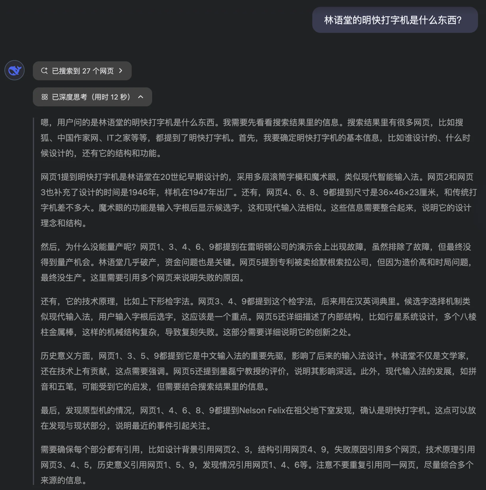 特别是深度思考和联网搜索能同时开启后,就看AI自己炼自己,再输出结果。