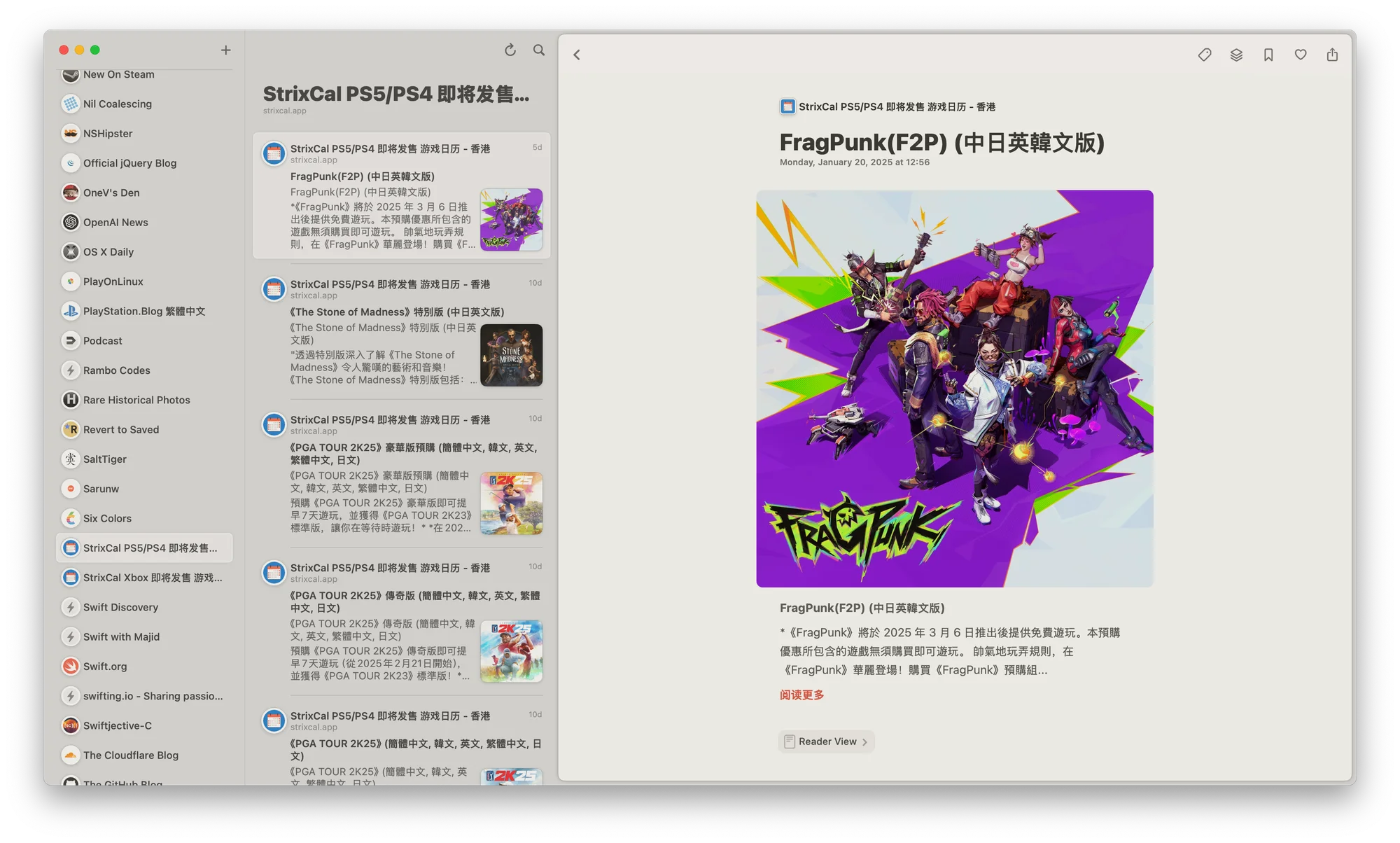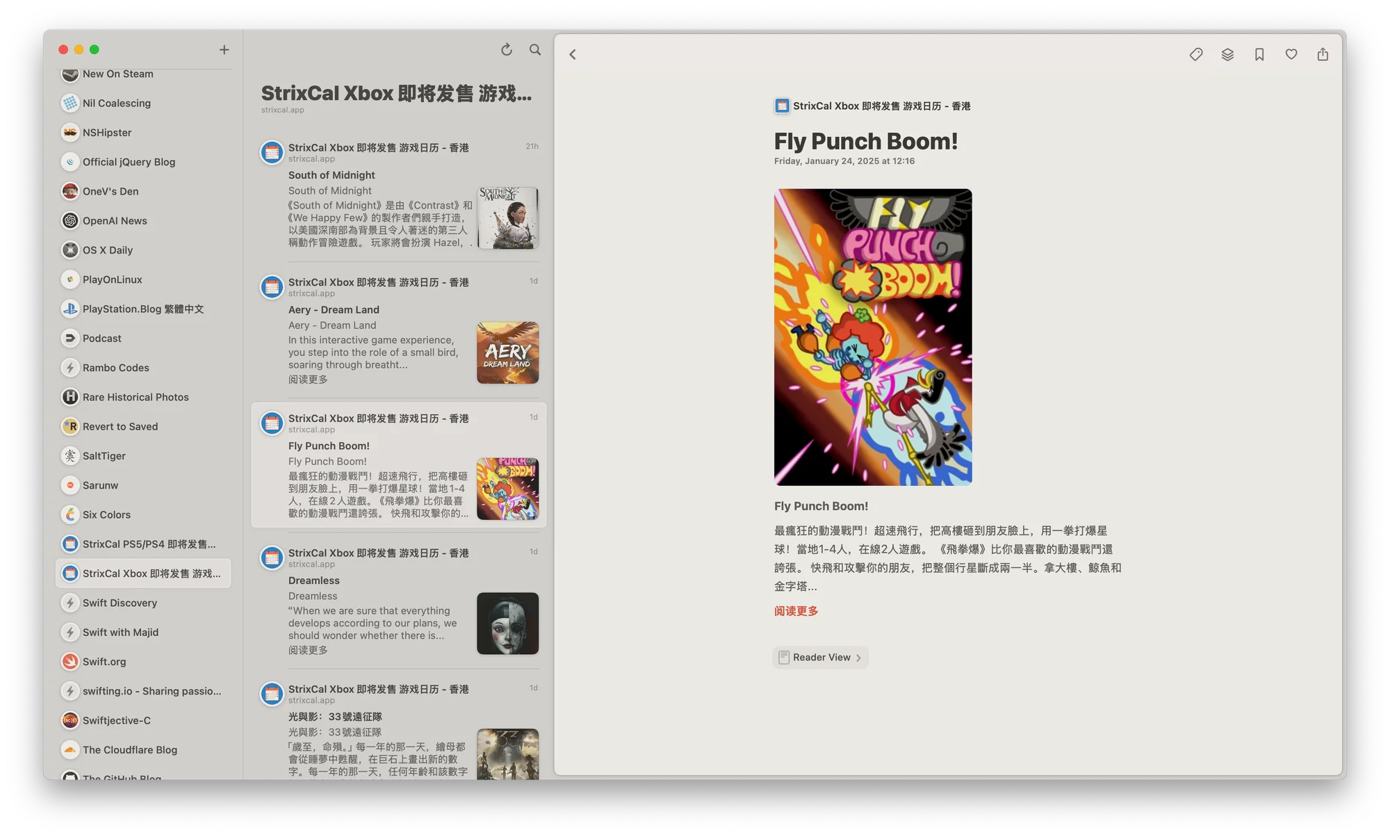 做了一个RSS订阅,欢迎大家使用。主要是提供PS和XBOX官网商城上新的RSS订阅。共分两大类,一个是即将发售,一个是刚刚新发售的。订阅了每天在RSS阅读器里面就可以看到上新的信息推送了。每个地区的内容是略有不同的。详情请访问网站。