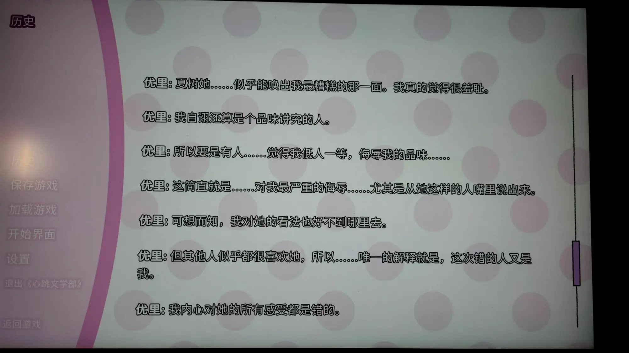 之前一直不敢玩ddlc,听了萝卜对莫妮卡发癫后还是鼓起勇气玩了,玩了本体隐藏结局,又玩了几个支线故事真的好棒😭😭,支线像在跟最知心最了解自己的朋友聊天一样,四个女孩身上我都能找到像自己的特质,优里简直就是我,脆弱敏感害羞又容易多想😭😭
