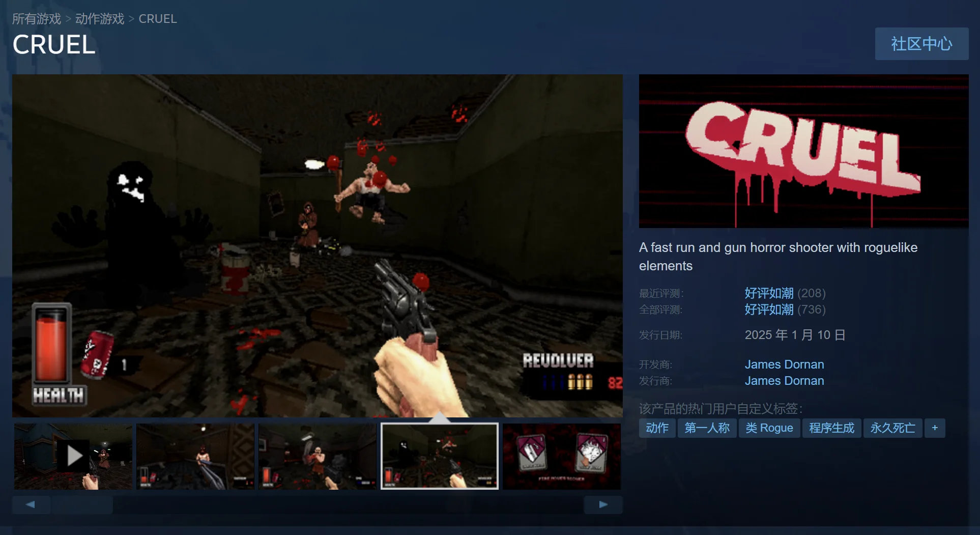 又是一款boomer shooter,而且有肉鸽要素。努力在这个扭曲的酒店里生存下去!