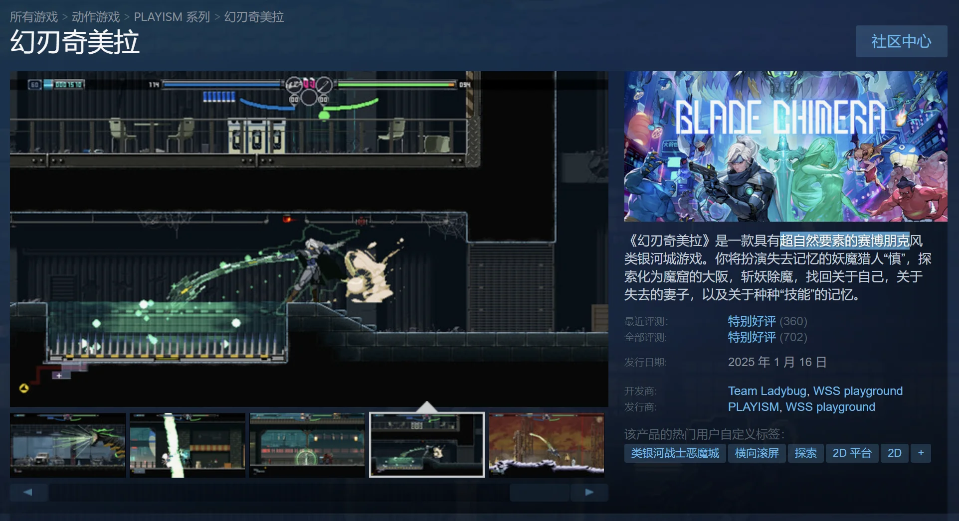 包含超自然要素的类银河战士恶魔城,像素风的场景和敌人非常精致,战斗和探索均广受好评~