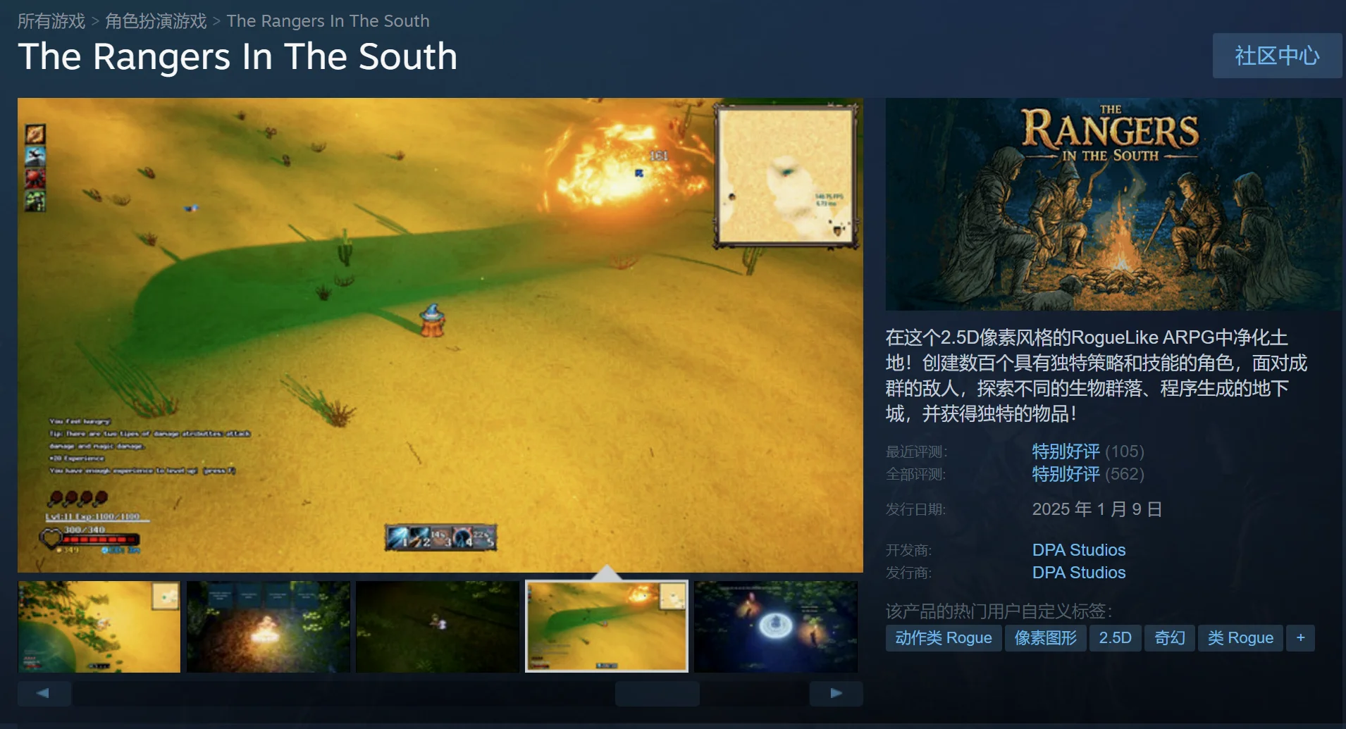 这是一款有肉鸽要素的像素ARPG。没有预设职业,随机装备掉落,每个角色都是新的体验。小心翼翼地探索这个世界吧~