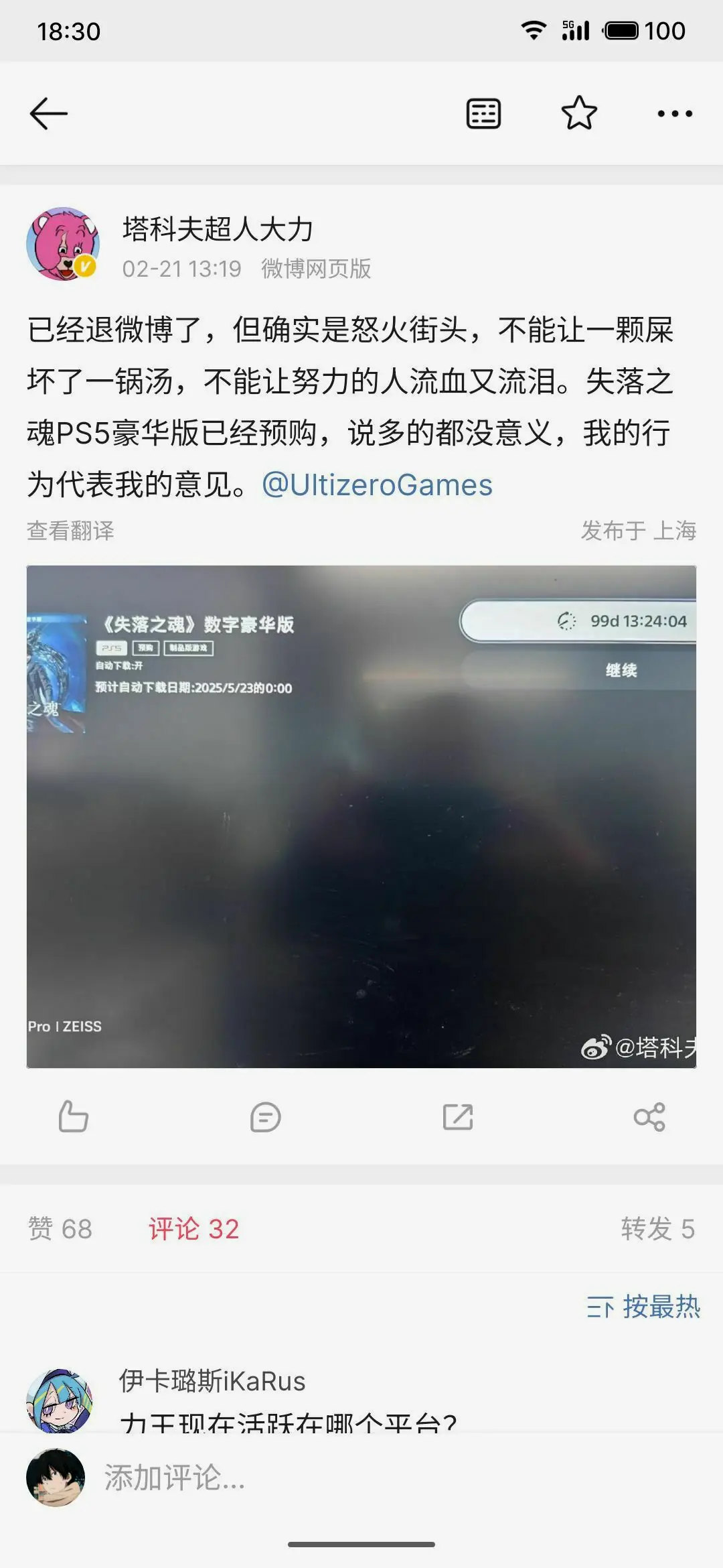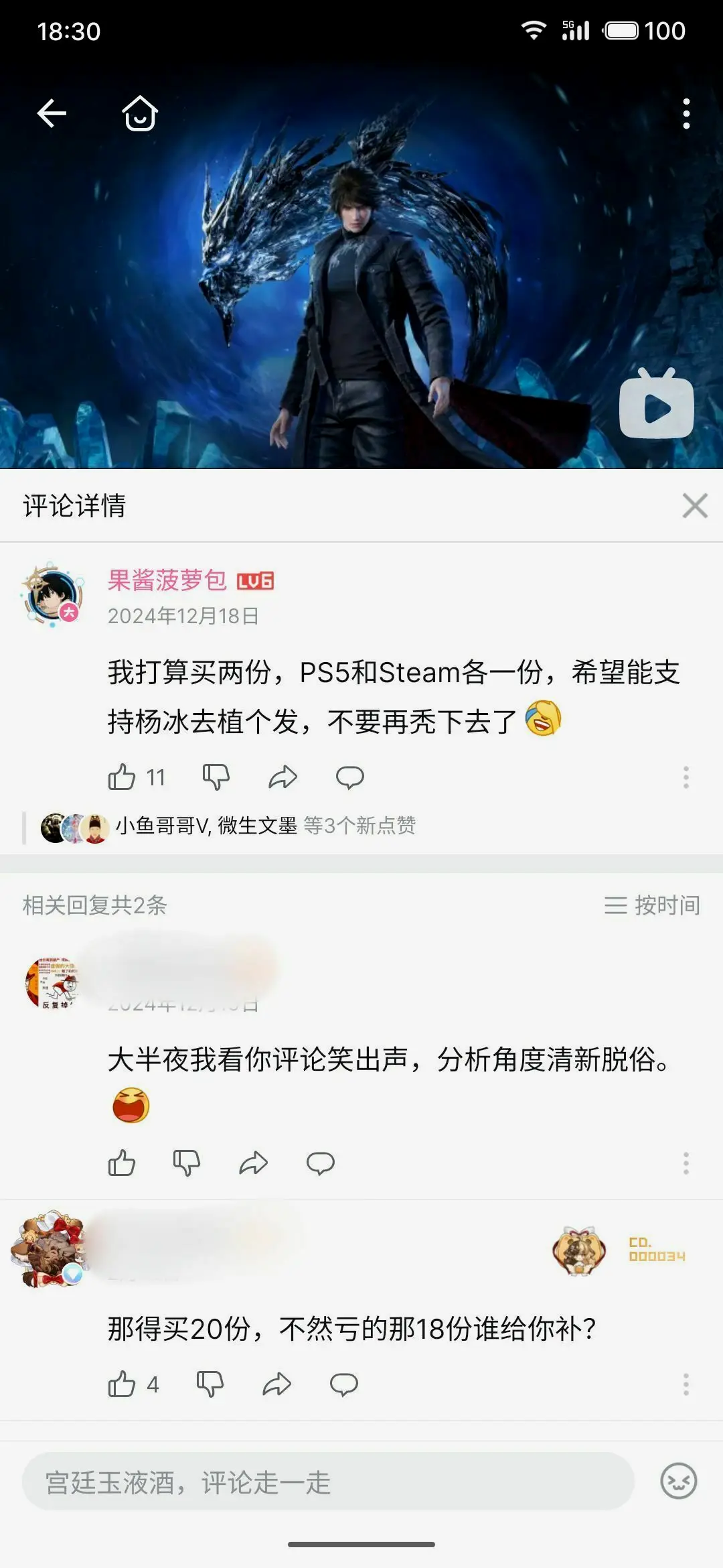 当然我是打心眼里希望这个游戏好的,我从来没有到任何评论区去刷那些表情包,甚至我去年年底在官方PV下就表达了支持(图1)。不过看到大力表示已经预购我就有种不好的预感(图2),希望疯猫别预购.....我打算看看媒体前瞻和第一波玩家评价再入手��