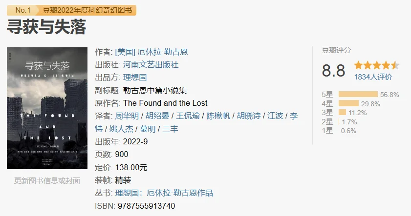 这个故事我最早是在厄休拉·勒古恩老师的小说集《风的十二方位》中看到的,但受限于稀缺的出版资源和现有资源的糟糕阅读体验,《风的十二方位》只读了一半多便搁置在一旁,没有继续读下去。后来在过年的时候看到勒古恩老师的另一本小说集《寻获与失落》中也收录了这篇,便把《寻获与失落》放在了待读清单中。