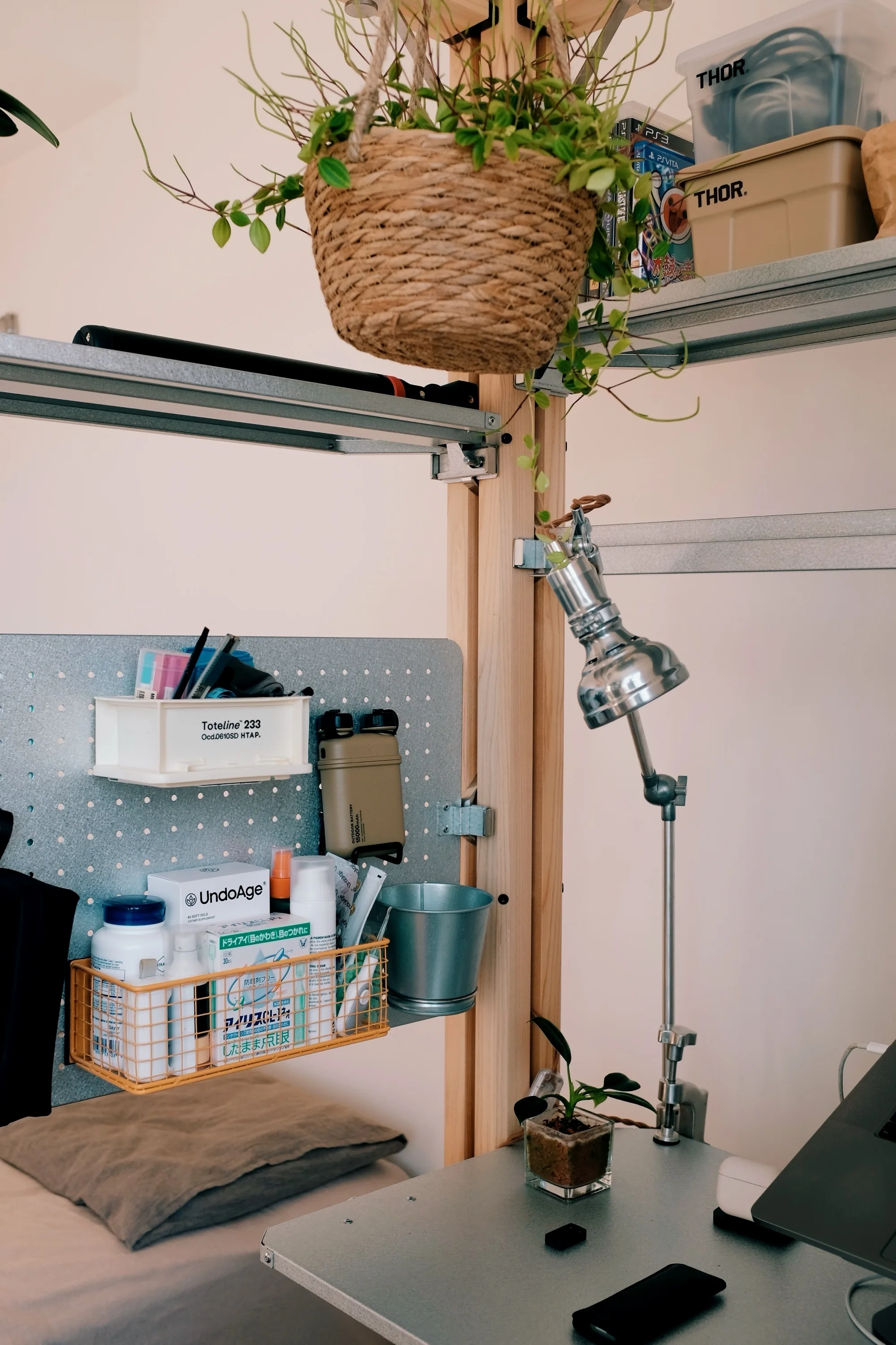 后面我会在靠床这侧的洞洞板上放一些隔板,这样可以承担一个床头柜的功能,一物多用,不得不再次感叹这件产品的绝妙想法。