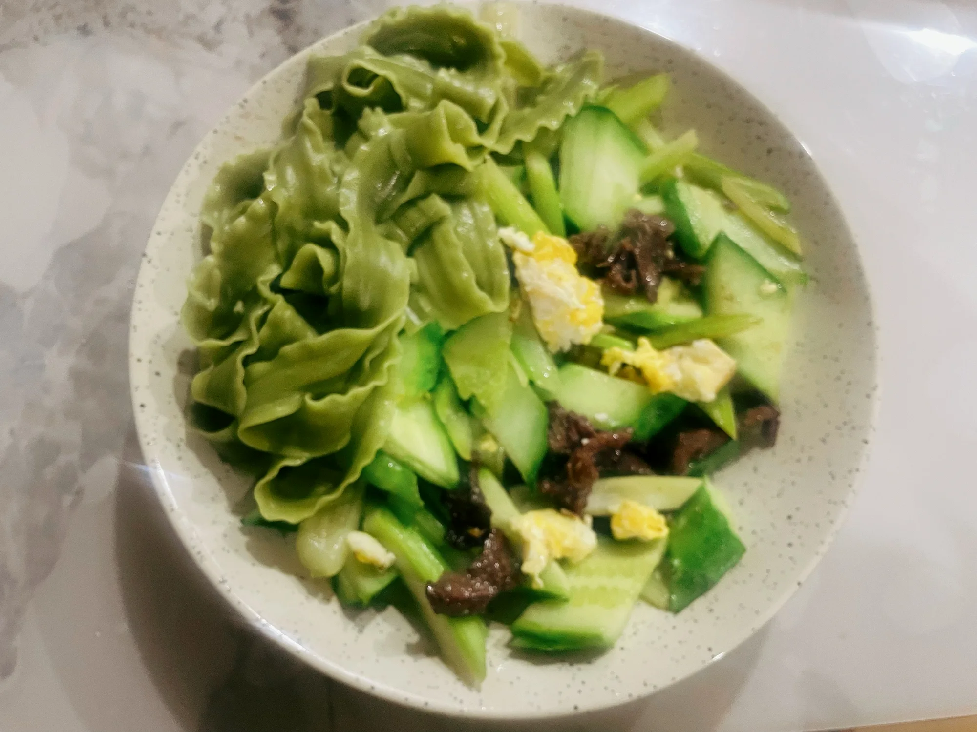 气得都拍糊了(,以及绿色的面是因为卖点是面粉里加入了西兰花��
