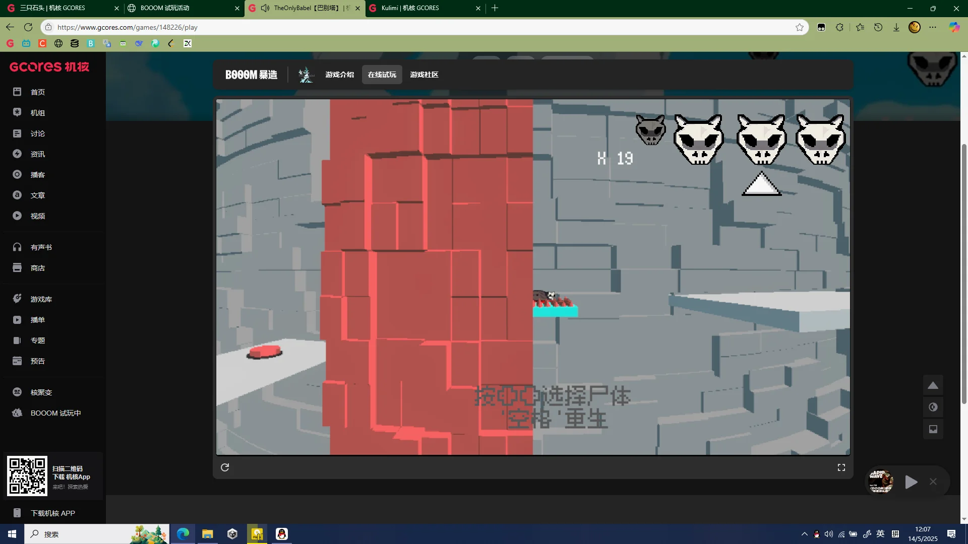 再玩两关:发现游戏谜题居然设计得出奇的完整,而且因为需要频繁使用尸体作为存档点,如果不小心忘记存档可能会获得了类似getting over it的游戏体验。