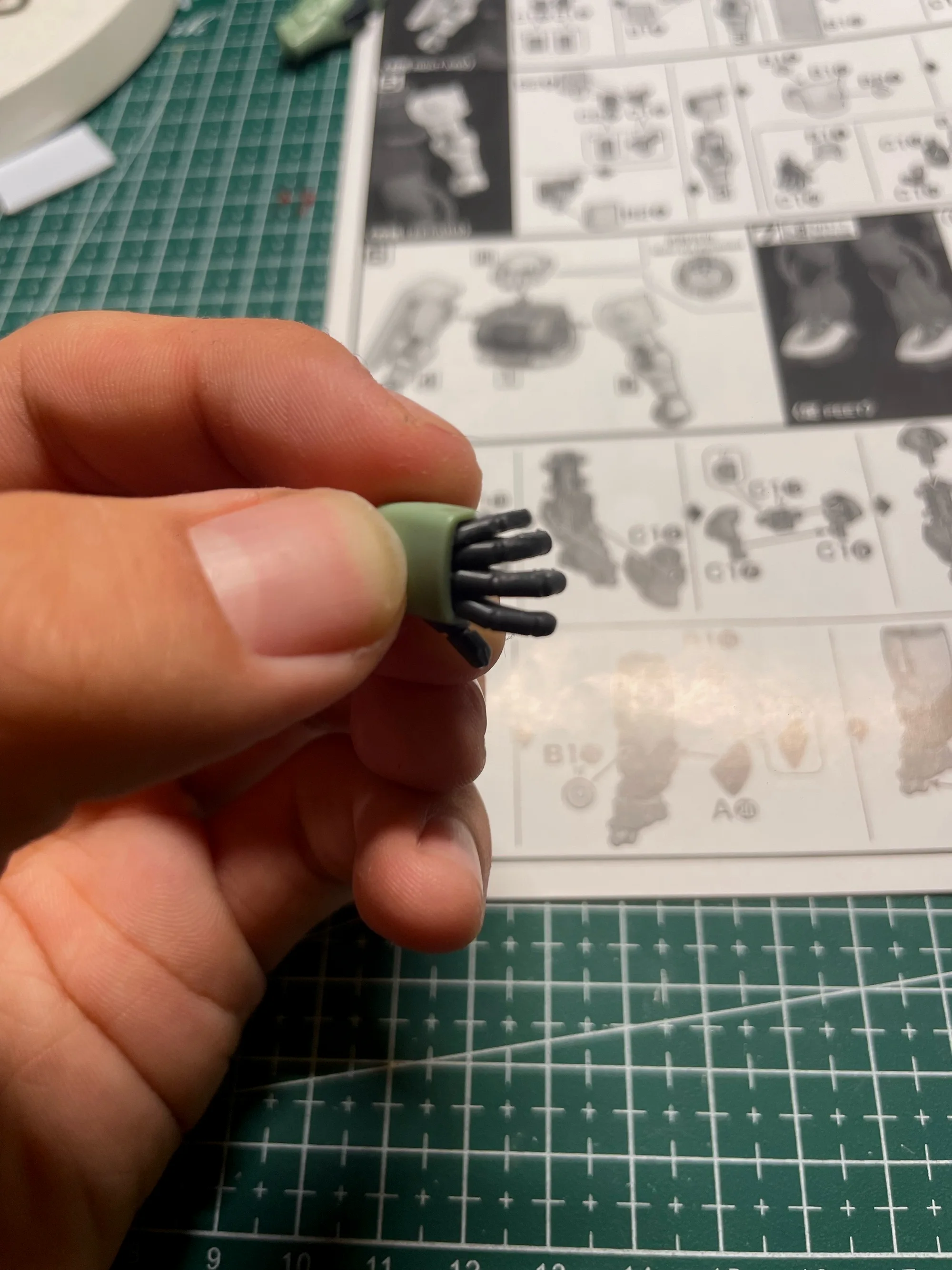 目前进度:这个是咸鱼 24 收的万代的,所有水口做了重新打磨,加固了球关节,做了无缝,在研究调夏亚的粉红色,等明天湿度低了就开泵。(图九)