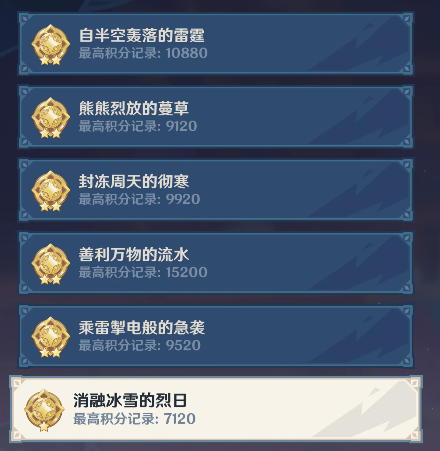战斗关卡设置就更搞笑了,首先是全队冷启动,但只给了1分30秒;充能困难的角色等了关卡计时器过了一半才开始循环,前面只能干瞪眼。克洛琳德更是深受其害,作为有强制8秒CD的角色,手还没热就下台下一关;给的敌人设置也离谱,冷启动的情况下玛薇卡关放吸大招能量的大灵,克洛琳德上半专给索敌效果差手不能停的但非要专门去打对应机关的隐形三角。以及试用的carry角色暴击率暴击伤害有严重问题:瓦蕾莎、克洛琳德、爱可菲、芙宁娜、夜兰的暴击率/暴击伤害是71.5%/91.9%,基尼奇和玛薇卡是更离谱的26%/183%。这不是坑爹吗???