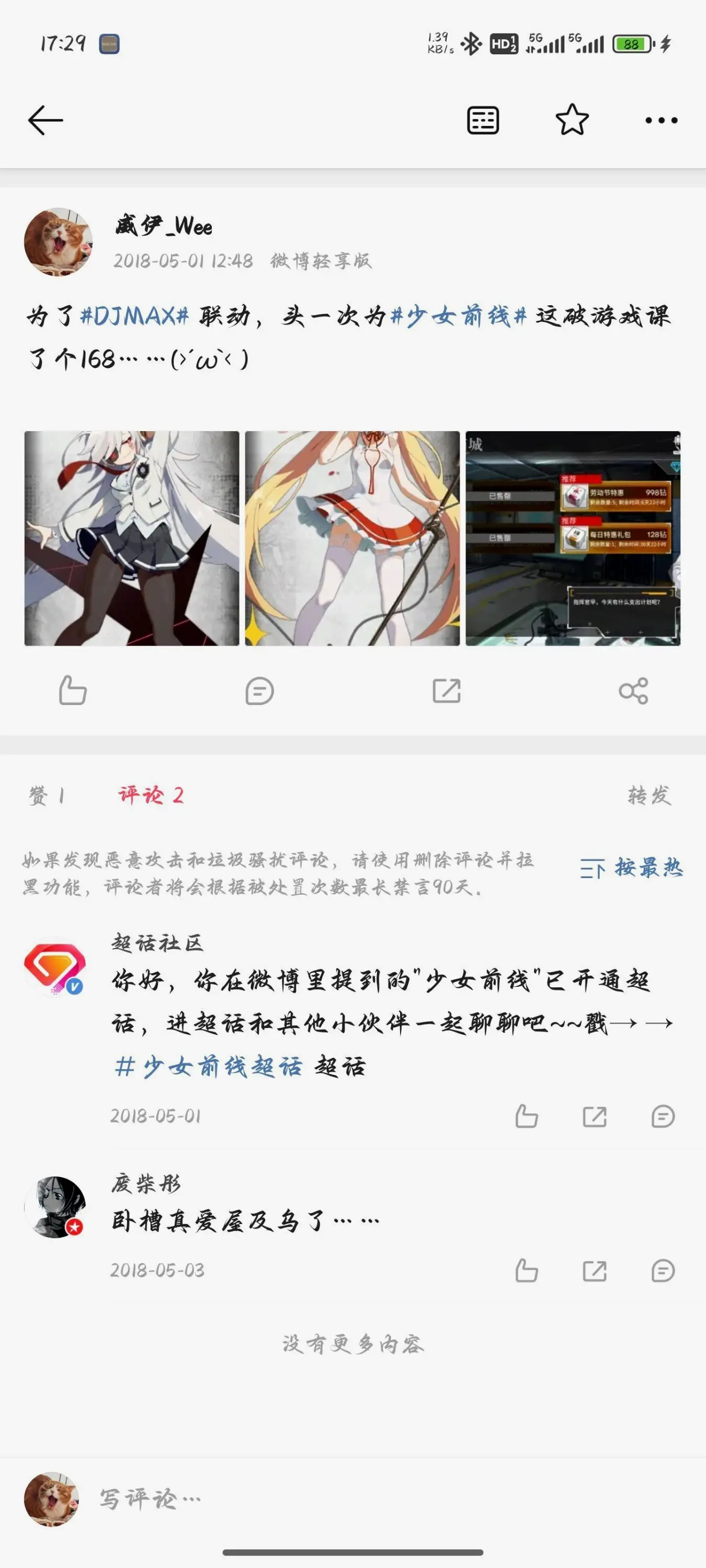 从我多年不用的微博里找到了我唯一一笔的少前1充值的时间节点。��