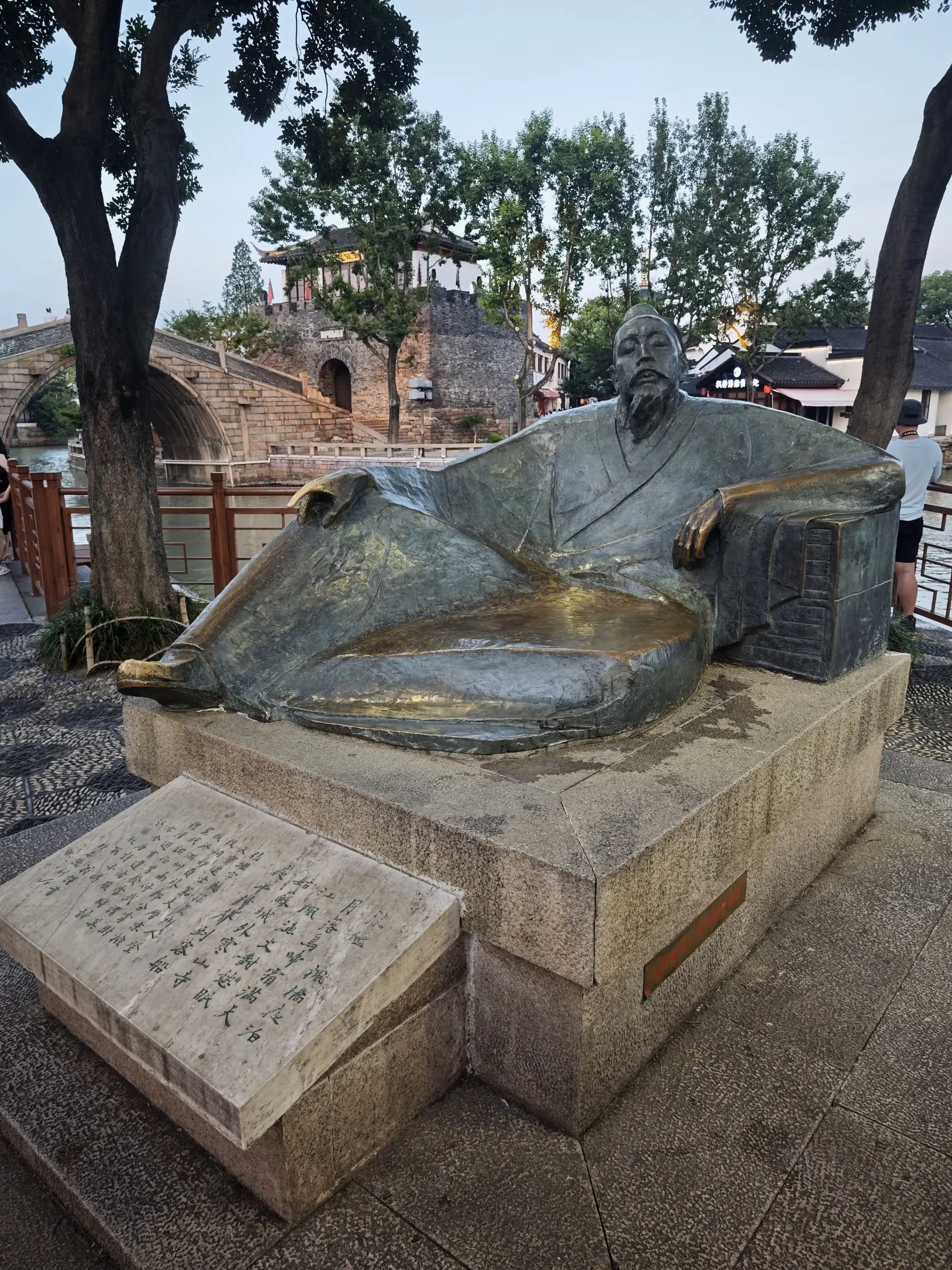 寒山寺,我到的时候很晚了,买票之后1分钟就关大门了,其实里面也没啥好逛的,我也不信佛,就进去随便看看,有不少貌似是古人来写的枫桥夜泊的碑,还算有点看头,但全都被玻璃罩着,巨反光根本没法拍照,剩下的枫桥和大碑都在寺外面,虽然票价20块不算贵,但确实没必要进去了。