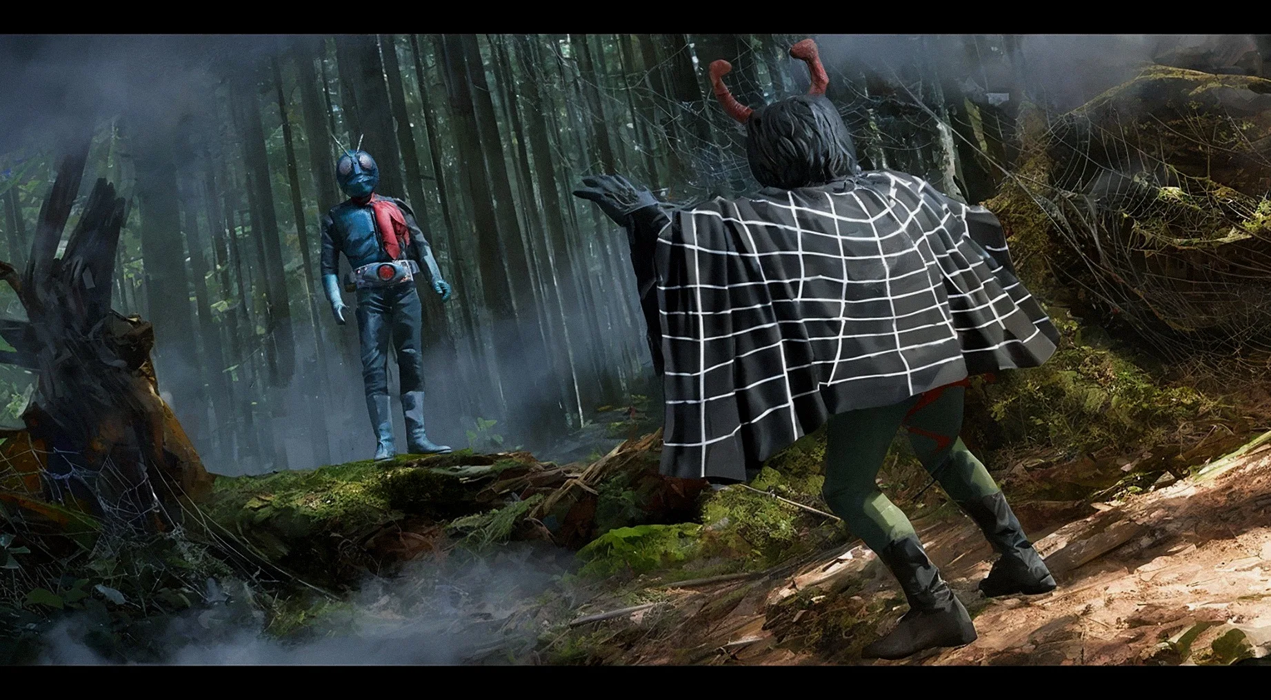 《假面骑士》同人图 VOL.1 完成!还是更喜欢昭和骑士,场景灵感来自 1974 年假面骑士第一部第一集【怪奇蜘蛛男】