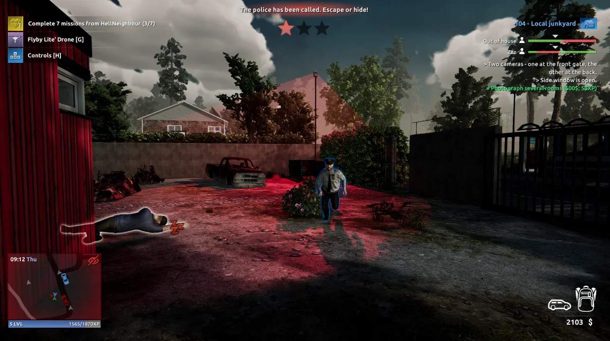 接下来到了盗窃的过程中,房子内可能会有各种阻拦,比如门锁,摄像头,报警器等等东西,而这时就需要你去巧妙的避开这些东西,或是利用你已经掌握的技术去攻克他们,收集盗窃过程中的各种小游戏也都还比较有趣,各种手段也是非常多,无人机,黑客电脑,开锁工具等等都非常全,让你能够成为一个技术大佬。整个盗窃过程中也能够充分感受到那种提心吊胆的感觉。小件物品放进背包,大件则需要一件件搬到车后备箱去。等到盗窃结束之后你就可以将盗窃所得的战利品去进行销赃,或是卖给废品回收站的哥们,或者你也可以在黑客湾上查找是否有人悬赏,这样你就能卖出一个更好的价格。而如果你不幸盗窃失败而锒铛入狱,你就会发现一个 新的玩法,你可以选择向警察交钱,从而将自己保释出来,或者是采取更适合你,更加大胆的方式——越狱!这使得游戏更加真实,也更加具有挑战性。