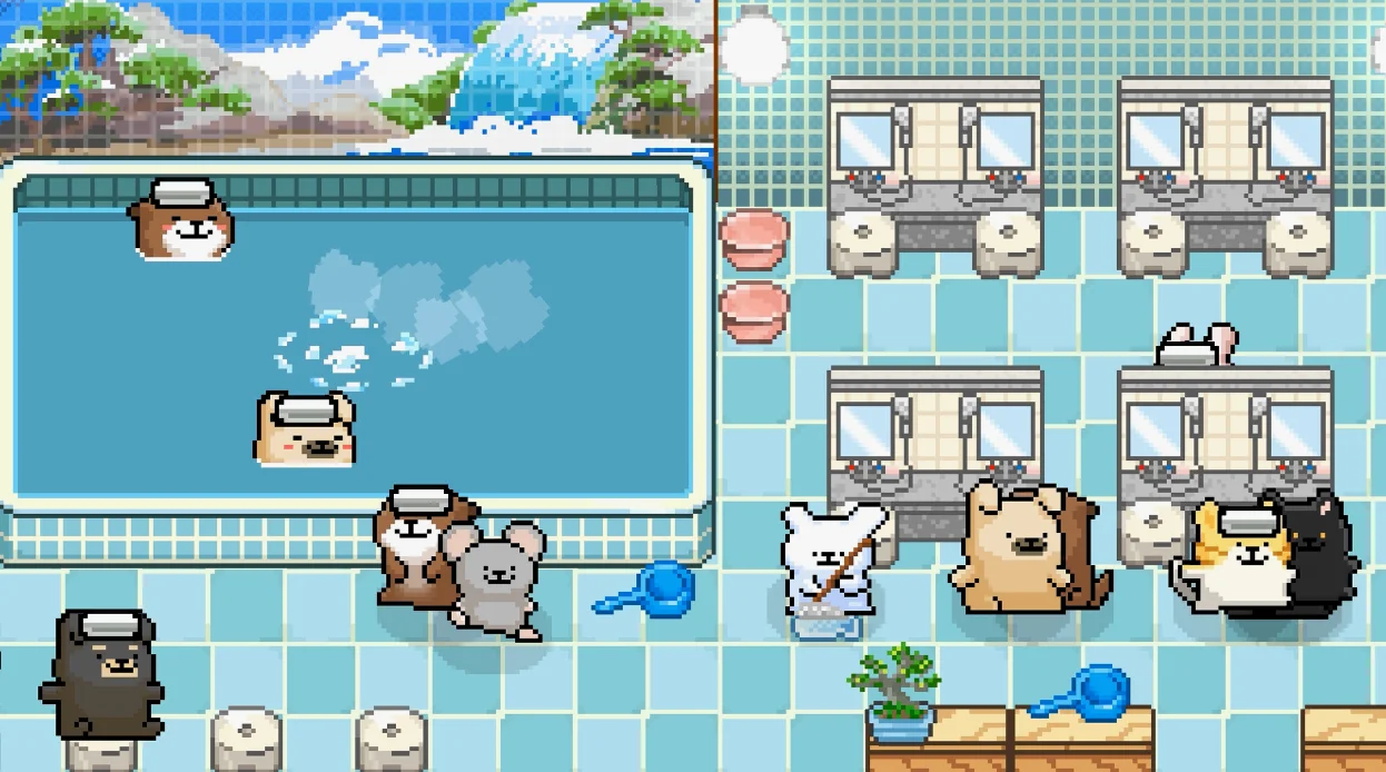 在《线条小狗:动物温泉(Animal Spa)》中我们的动物朋友化身澡堂经理,为其他小动物提供休闲娱乐;游戏经营的底层逻辑相当简单,为不同喜好的动物建造不同温度的温泉,完善场馆内的其他设施:毛巾架、饮料贩卖机、小吃摊等等。当小动物前来泡澡或是使用场馆内的设施后玩家便可获取金钱和星星,利用这些资源就可以解锁更多的室内设施或是装饰,招揽更多的员工。