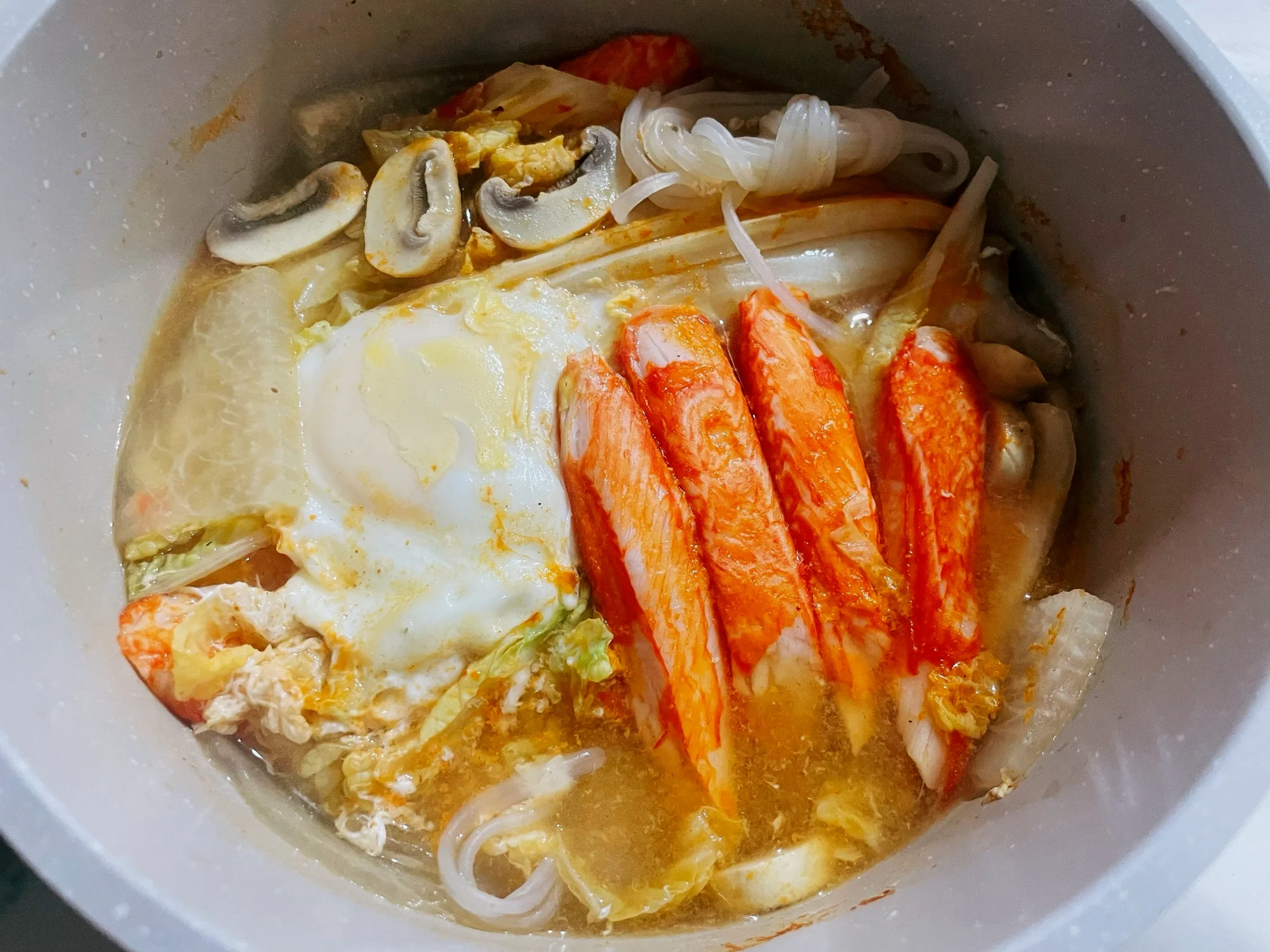 2️⃣今天吃酸汤蟹柳鸡蛋蔬菜锅