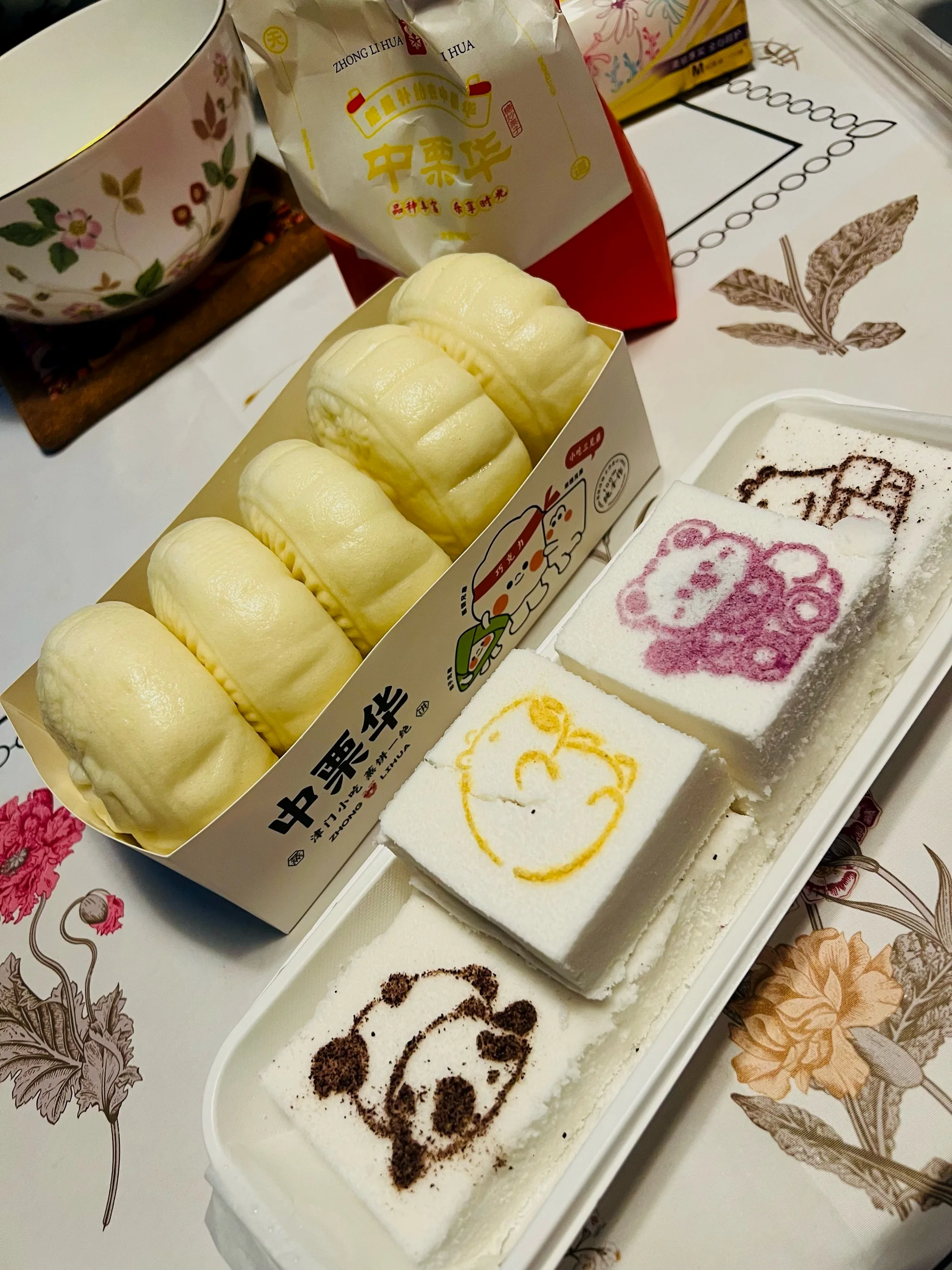 巧克力🍫蒸饼儿和榴莲馅儿米糕当饭后甜品🍮也很不错~👌