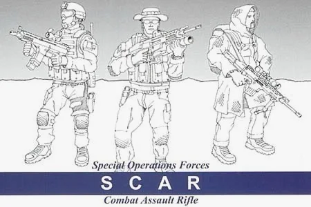 这款特种作战部队战斗突击步枪最初设计于2004年左右的美国特种作战司令部招标中,短短几年内就以其7.62北约口径(SCAR重型和Mk 20狙击型)和5.56北约口径(SCAR轻型)两种型号正式投入使用。除了在美军特种作战部队中少量服役外,SCAR还被比利时军方采用,取代了FN FNC步枪,并随后在超过25个国家的突击队中服役,包括日本、印度尼西亚、波斯尼亚和芬兰。