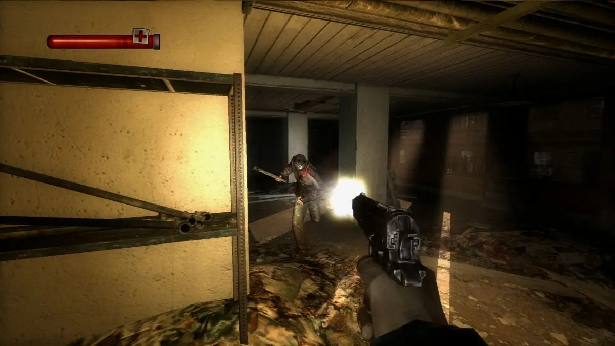 本作有着基础但扎实的近战格斗要素,格挡、终结技一应俱全。场景中随手都可以获得战斗工具,一些特殊的重型武器还兼具了破门攻关的作用;相比之下虽然流程中也确实可以获得枪械,但枪械类武器定位非常辅助,无法填充弹药且用完即弃(当然丢掉之前可以当近战武器使)——至于玩家随身携带的电击枪则更多起到一个紧急解围的作用。以现在眼光看最大的缺点可能就是关卡环境和核心玩法的变化不够丰富——大部分时间玩家都在破败的各种城市设施内穿行,虽然我觉得另一个角度讲这也让本作的压抑感更重,而类似的作品几乎也找不到第二个了。
