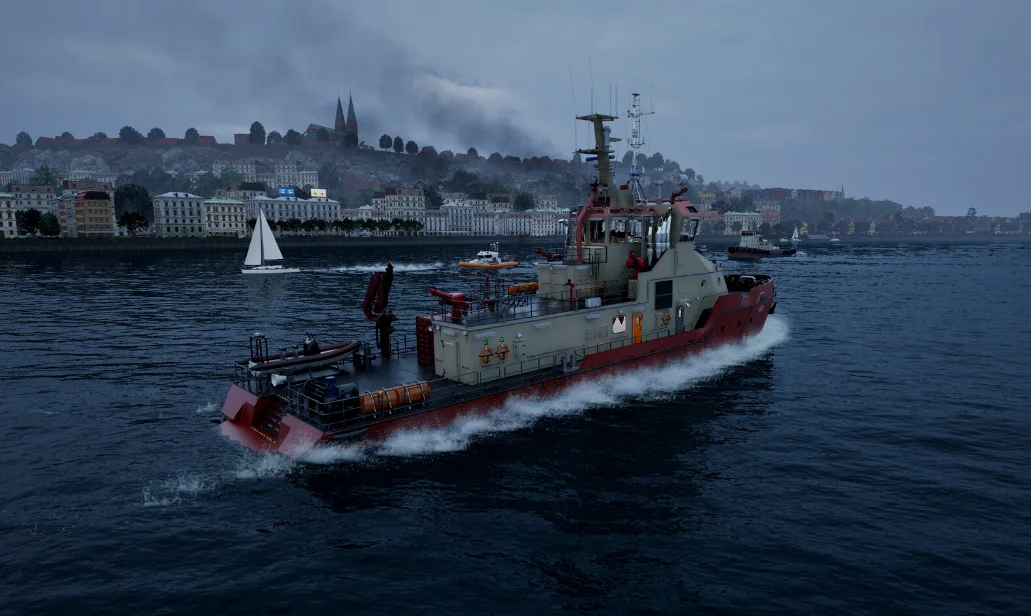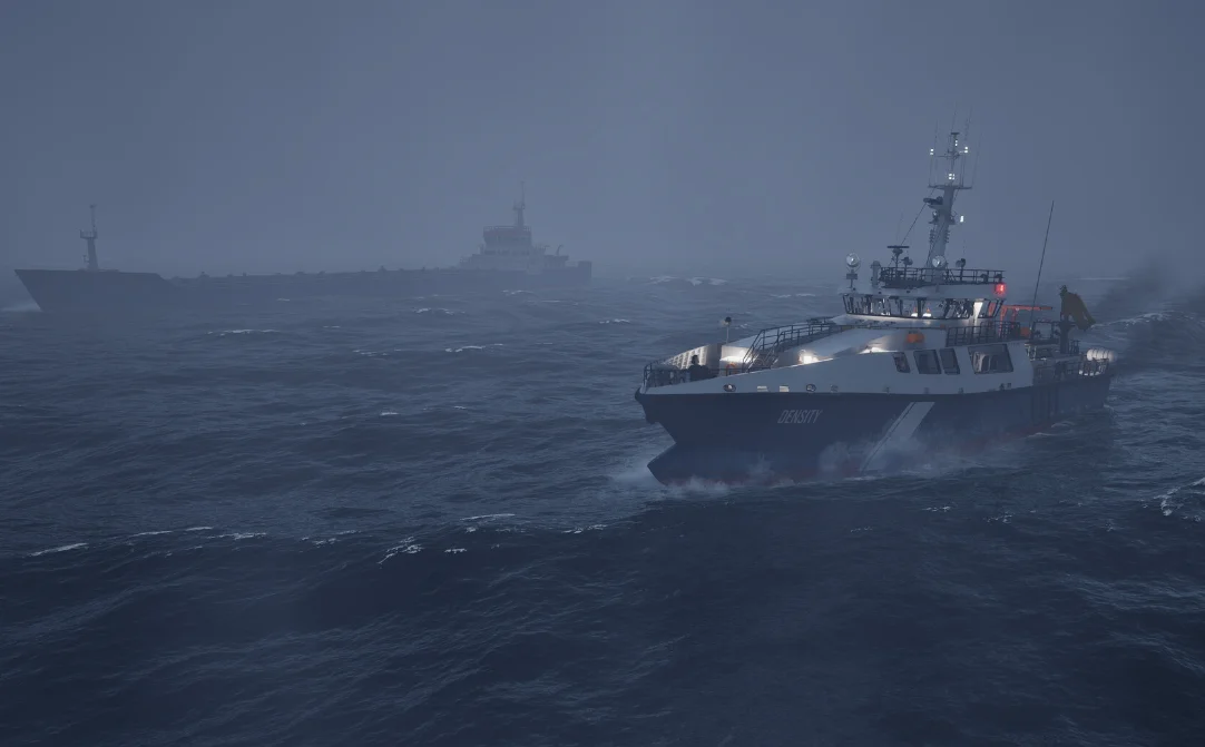 游戏的玩法层面也没有什么太多创新内容,就是围绕开船做了两条任务方向,一个是拉货一个是海上巡逻,就字面上的玩法没什么太多说的,船只的驾驶比较硬核,学习成本高一些,因为不能像传统载具那样直接调整方向,船只需要根据螺旋桨的方向和要前进的方向一点点调整,不然就会一直在原地转圈,刚上手不熟悉可能会有些劝退但熟悉了之后这种慢节奏开船的感觉还是挺有意思的,但本质上没有太多深度,节奏很慢玩久一点就很枯燥。