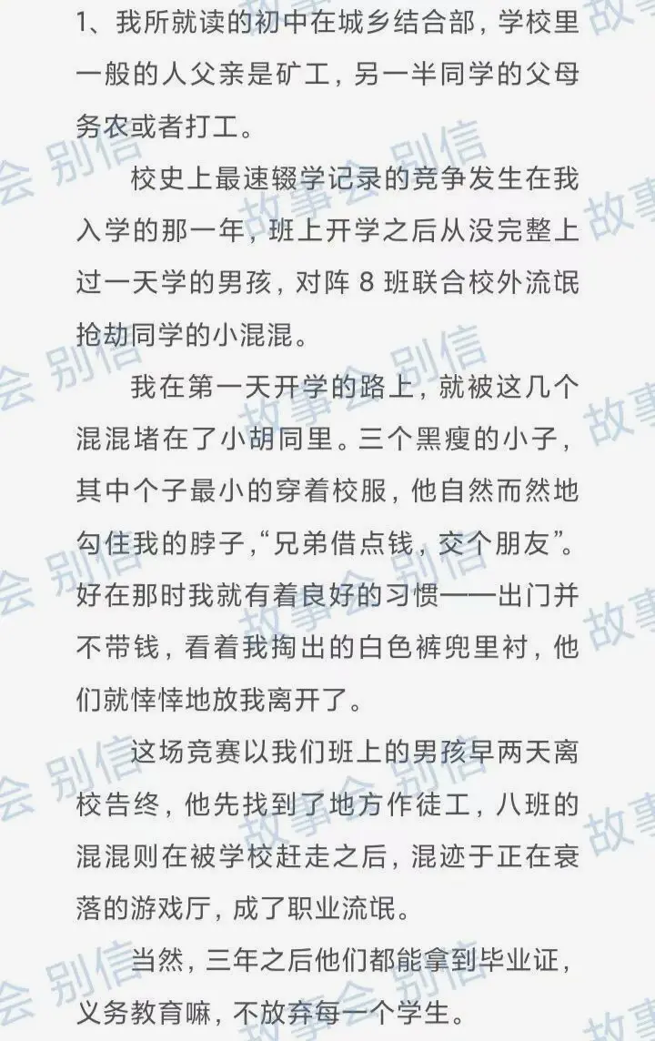 故事往前倒,他第一次抢劫的时候没想过,第一次逃学时候没想过,一步一步