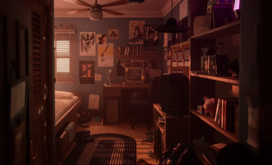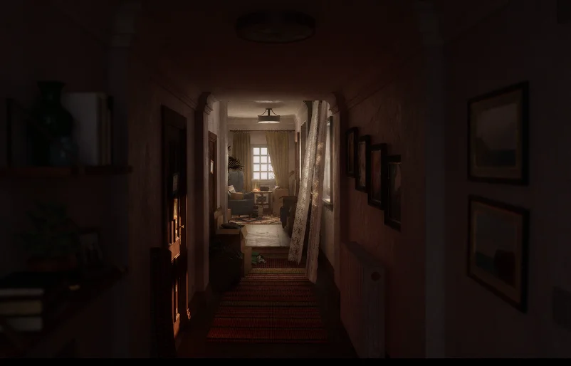 本作的主角山姆一个因失去挚爱而被困家中的角色,游戏精准地捕捉了重大创伤后人感知的错乱,空间感的丧失,方向感的崩溃,以及那份熟悉的日常被彻底撕碎的荒诞与恐怖。游戏中真正囚禁玩家的也并非表面上房间,而是内心无法化解的悲伤本身!