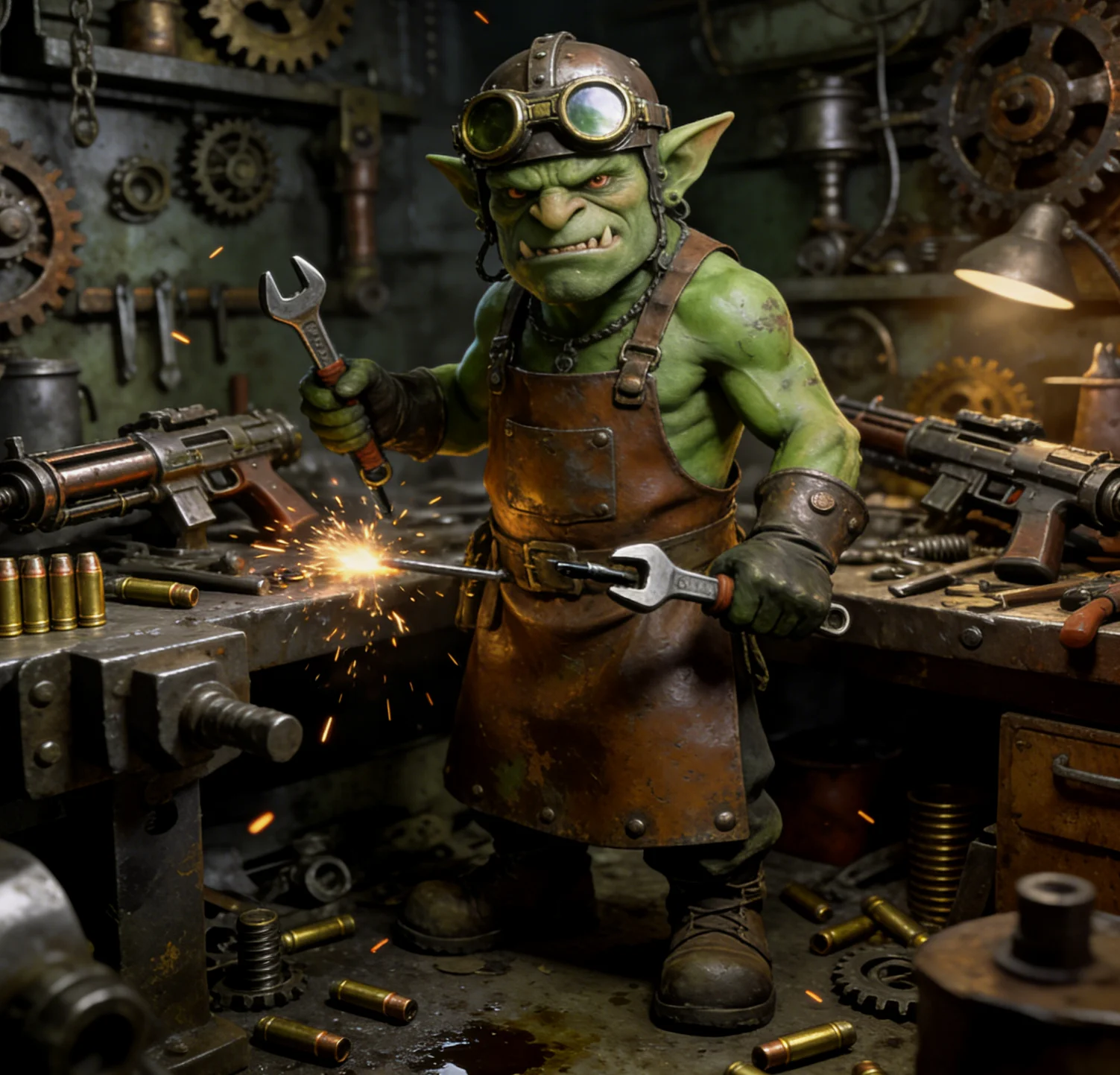 玩家可以制造枪械并且完成绿皮的委托,从而获取大牙(钱)