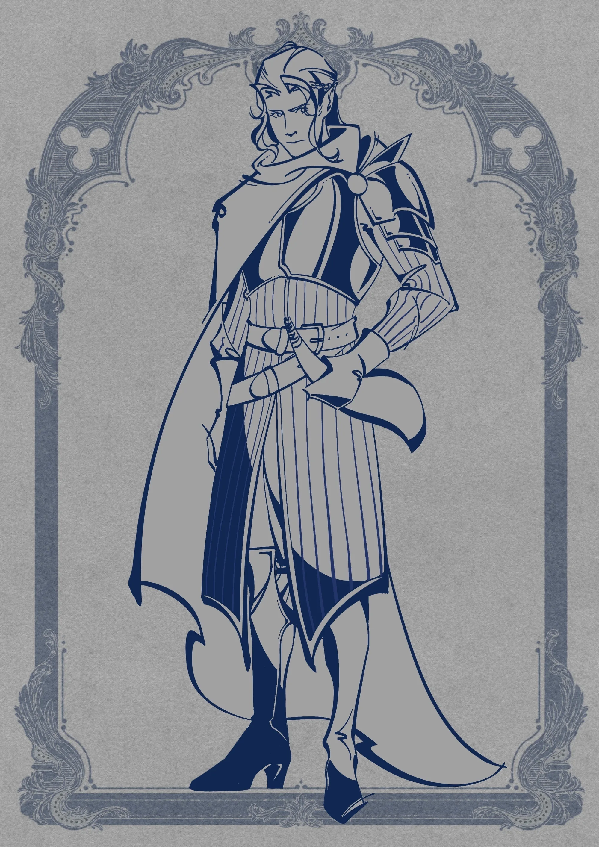 蹭到了一个精灵宝钻背景的团,遂车了一张精灵吟游诗人的卡,芬巩的号手,虽然严格来说是军人但套了吟游诗人的职业,吃我一声贴耳雷鸣波!坎亚托经历过泪雨之战,有很深的幸存者愧疚,但撇开那些其实性格挺泼辣的一个精,长得周正俊朗(魅18)但上至开战演讲下至酒馆叫骂都不含糊,作为前吟游诗人现军号号手,声如洪钟,语言天赋惊人,甚至能讲点人类语言但其实不太知道自己在说什么……p2是线稿我也挺喜欢的