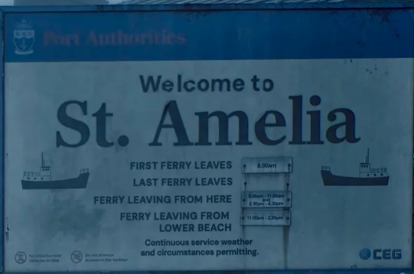 圣·阿梅利亚,虚构苏格兰海滨小镇。一张轮渡班次表。“如天气及其他状况允许,会持续运营。”(P2)