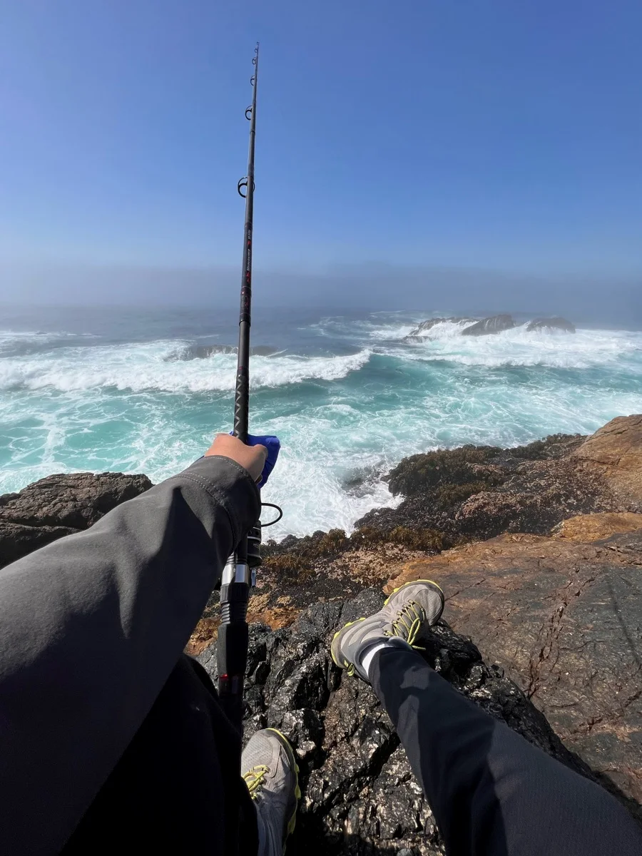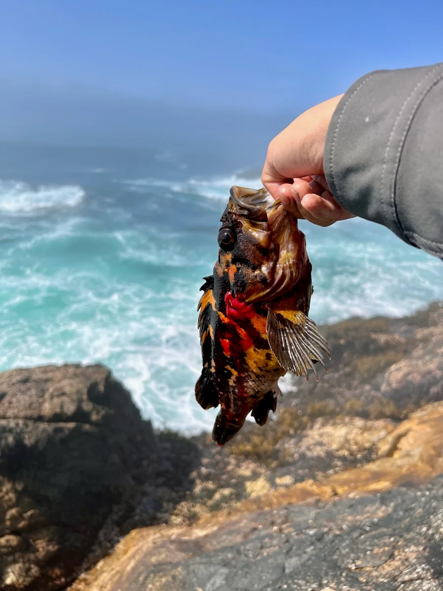 上周在加州一号公路旁边悬崖钓到的石斑!被老哥带着先开车两个小时再从路边徒步15分钟才到的钓点,风景真的很棒