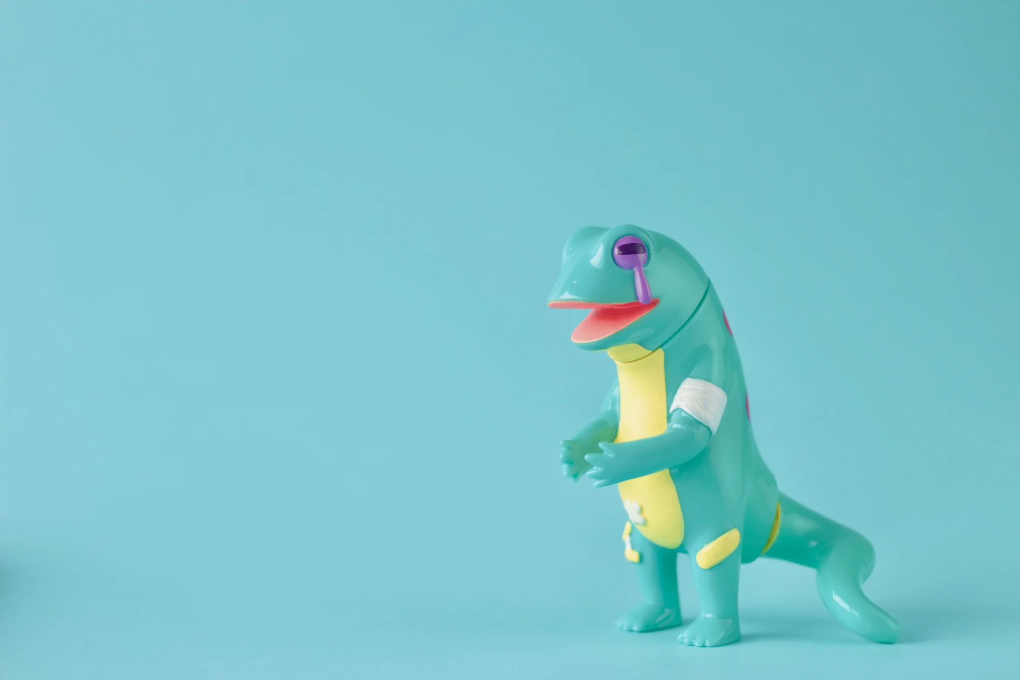壁虎虽然拥有断尾逃生的技能,但其实断尾后会他也会十分难过。来自玩具品牌OUCH & OOPS设计推出的“負傷の屋太郎”就是这么一只伤心壁虎。