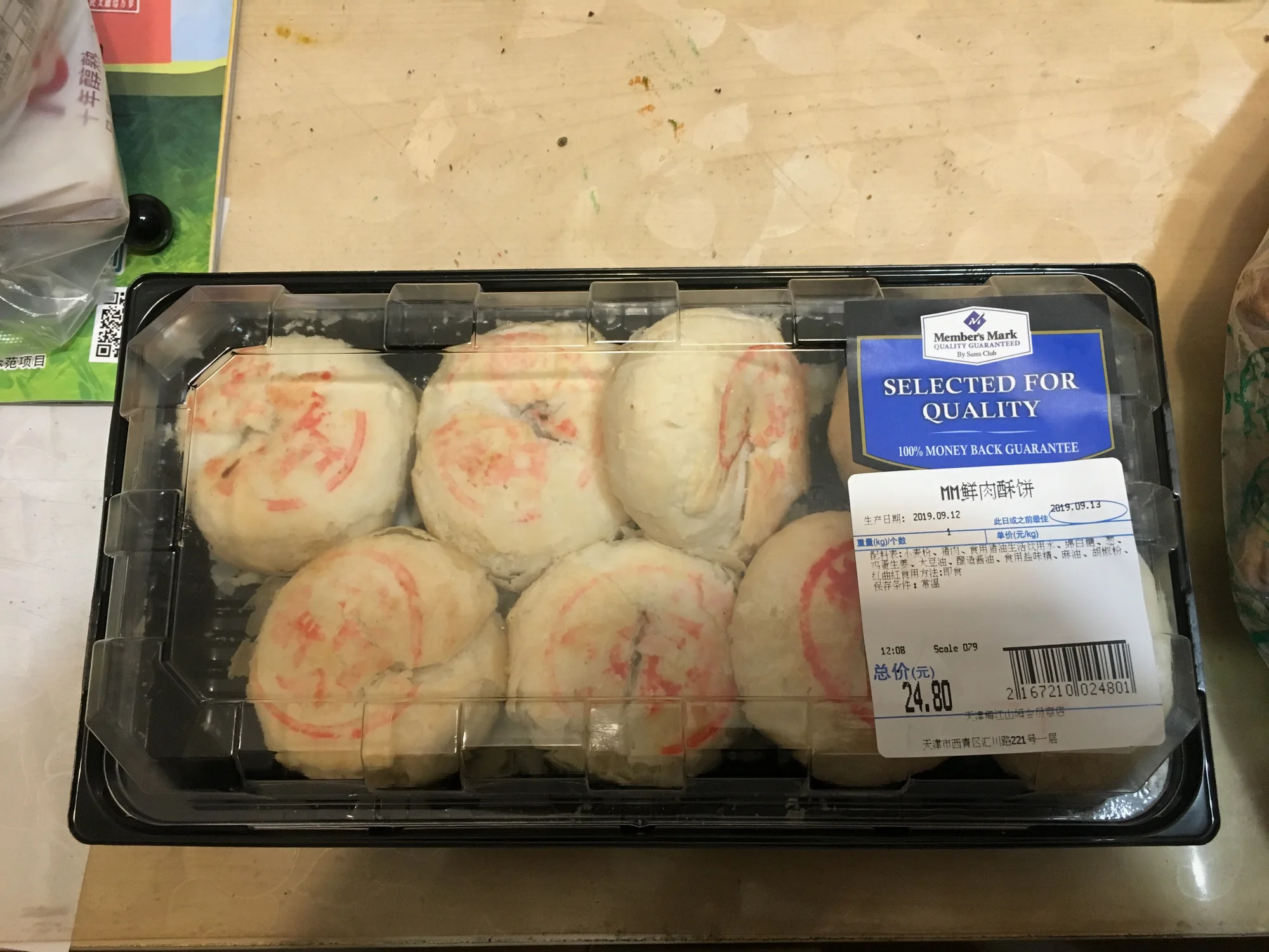 在山姆偶遇鲜肉酥饼,外观和苏式月饼差不多,口味和天津包子差不多。里面就差一个虾仁了。
