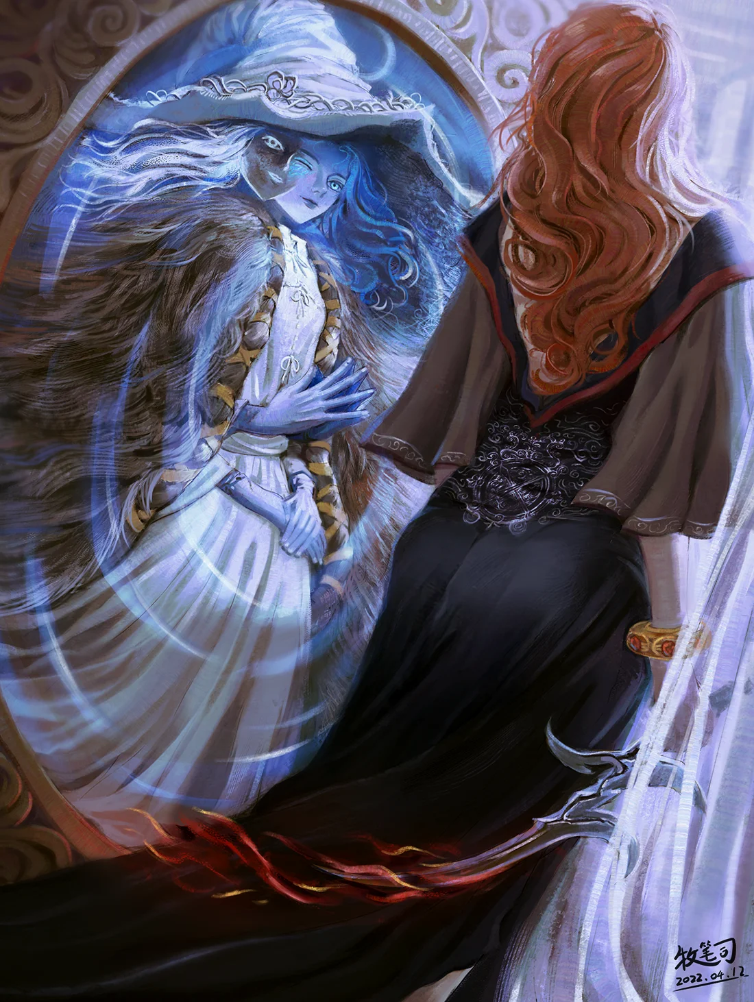 游戏里面关于菈妮的生前模样似乎只有一具焦黑的尸体,但我想她应该和她的兄弟一样继承了红发吧…