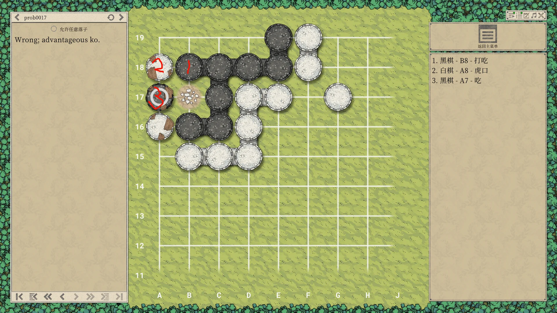 反过来,如果是白方打劫,下一步也可以走A17断绝黑方继续打劫的机会。