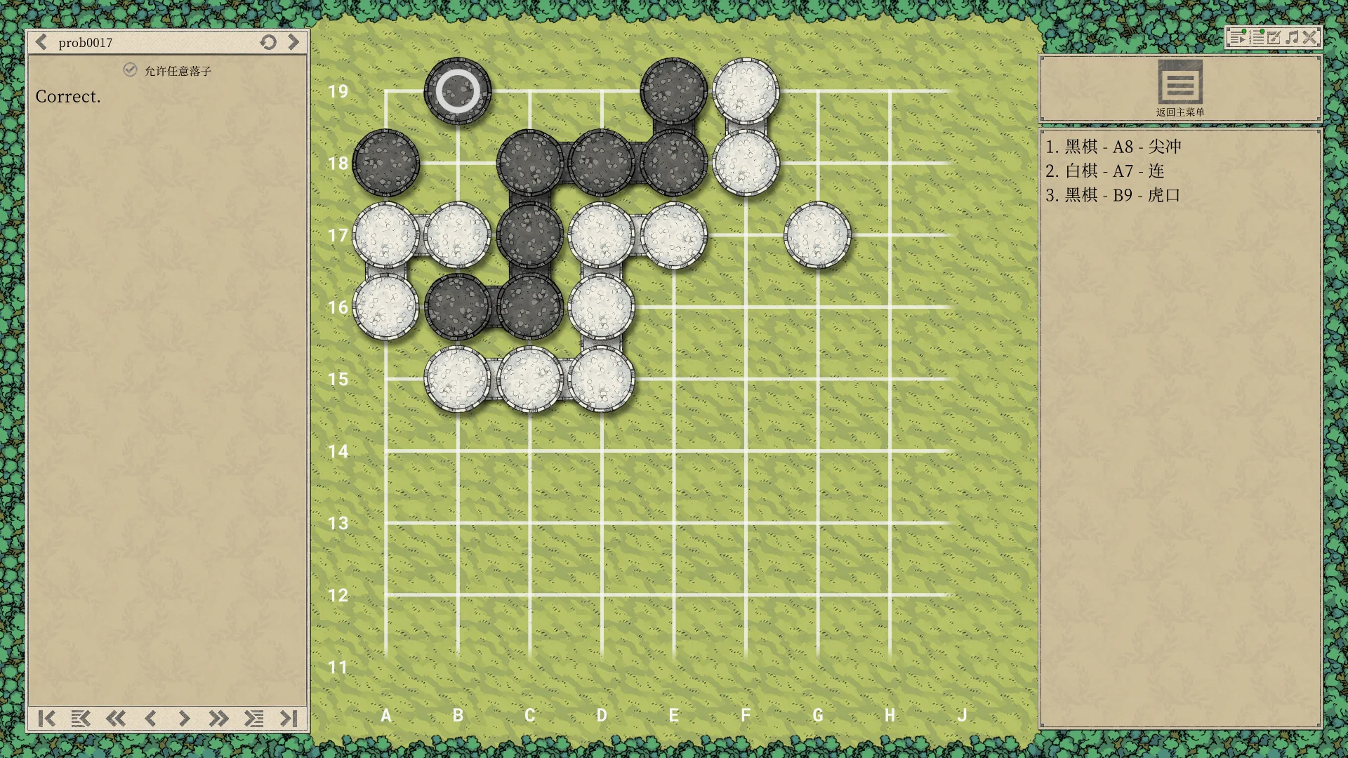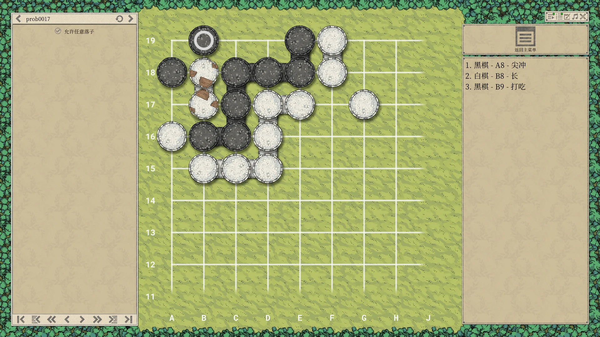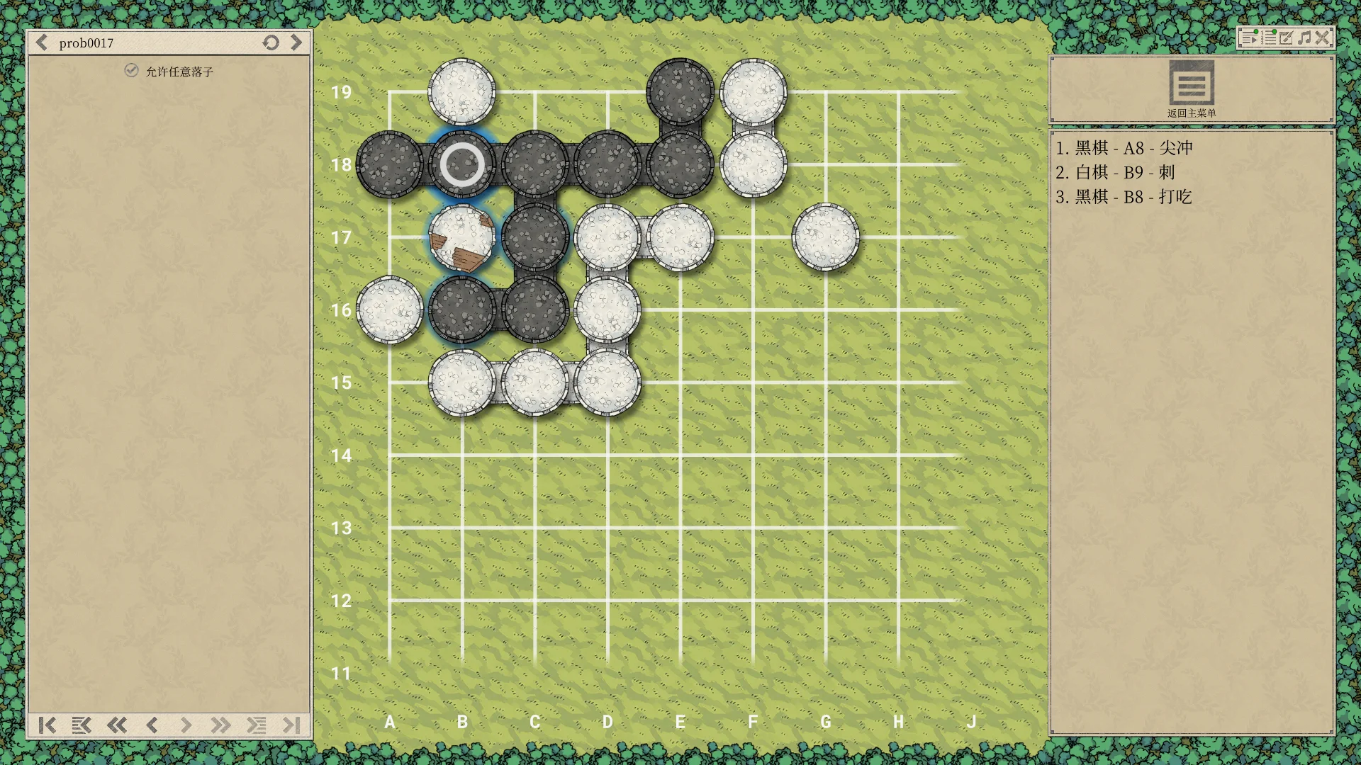 顺便说一下题目的正确解法:黑一手A18,且后续有这么几种变化