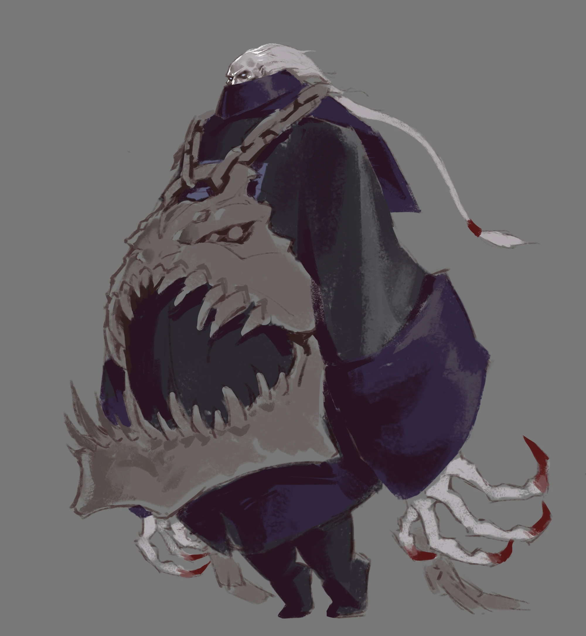 图一男主,肩膀上是一个抄袭死亡搁浅的八卦镜,可能有一些反隐形的功能;图二是女主的草图,因为很多道士的设定用在了男主身上,所以画女主时更加没什么想法了,其他一些道士相关的法器画出来又不是很好看;图三是一个类似游戏内效果的设定,可惜我画场景很废,当时就没继续了;图四是设定的一个大BOSS,当时还起了个中二的名字“轮道业火明王”;图五是个小BOSS或者类似杂兵的想法,平时可能是悬浮在空中,脚拖在地上快速移动,双手会僵硬的旋转劈砍;图六是一个传统僵尸的变形,不得不说这个设计非常受到早些年看过的一张《剑灵》的原画影响,后来感觉有些夸张过头了,不够写实,所以废弃了