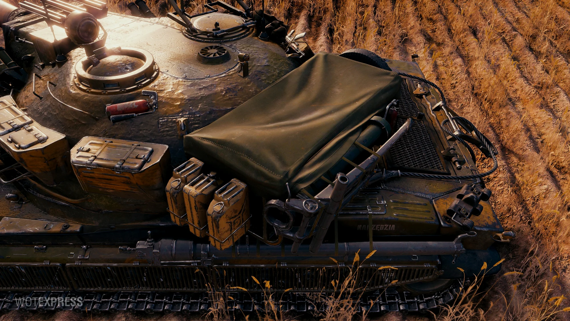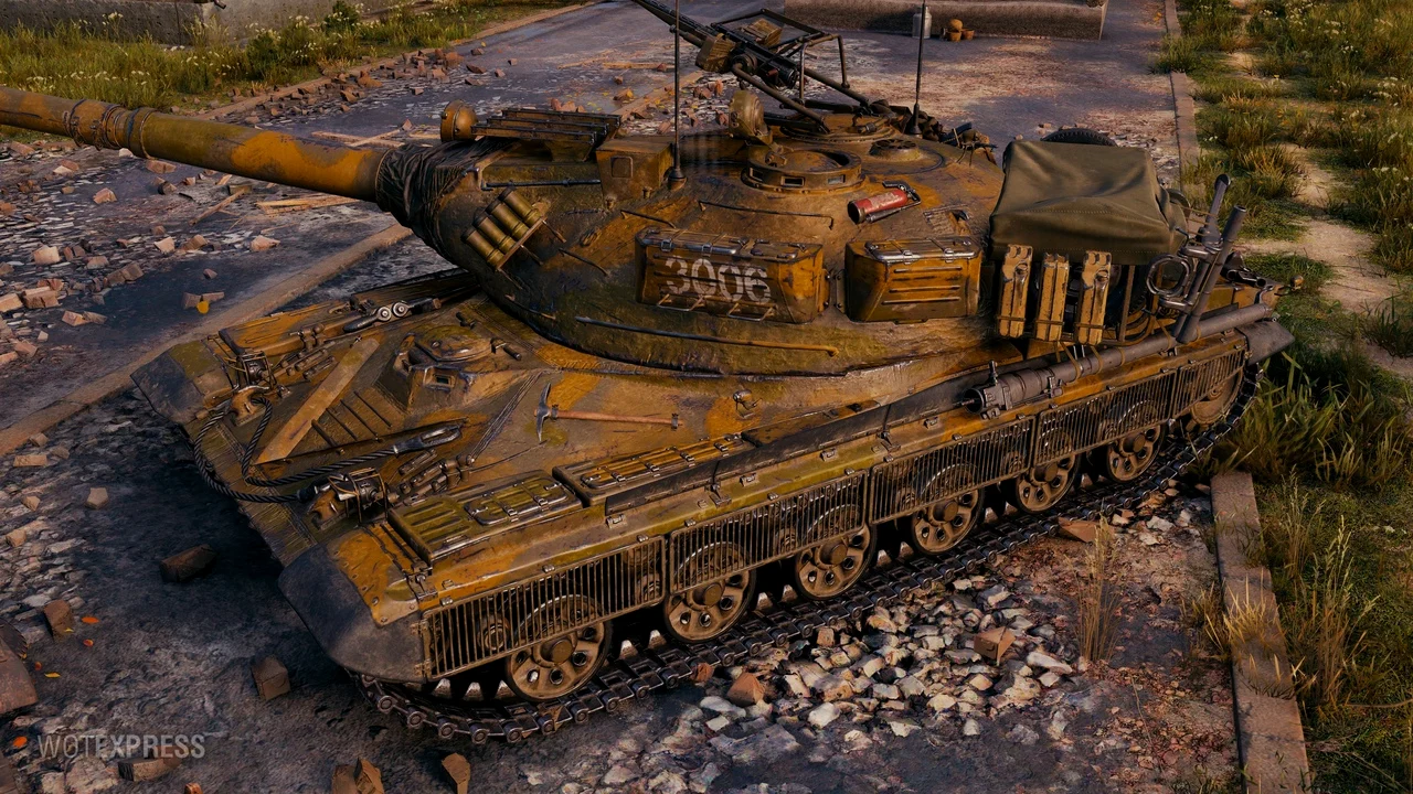 从首上的经典V字型防浪板和炮塔附加储物箱就可以看出,这款皮肤是模仿冷战时期华约集团T64主战坦克
