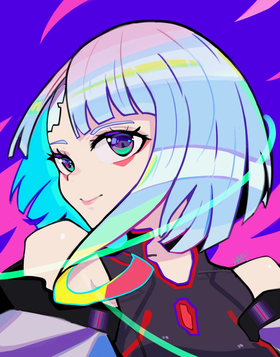 人物塑造方面也无可挑剔,露西真的是在xp上跳舞的疯批女人,不论是出场,在担架上飙车,再到用激光丝线。从前期的疯狂到后期的温情,真正的带好人,赛博世界里的完美女友。