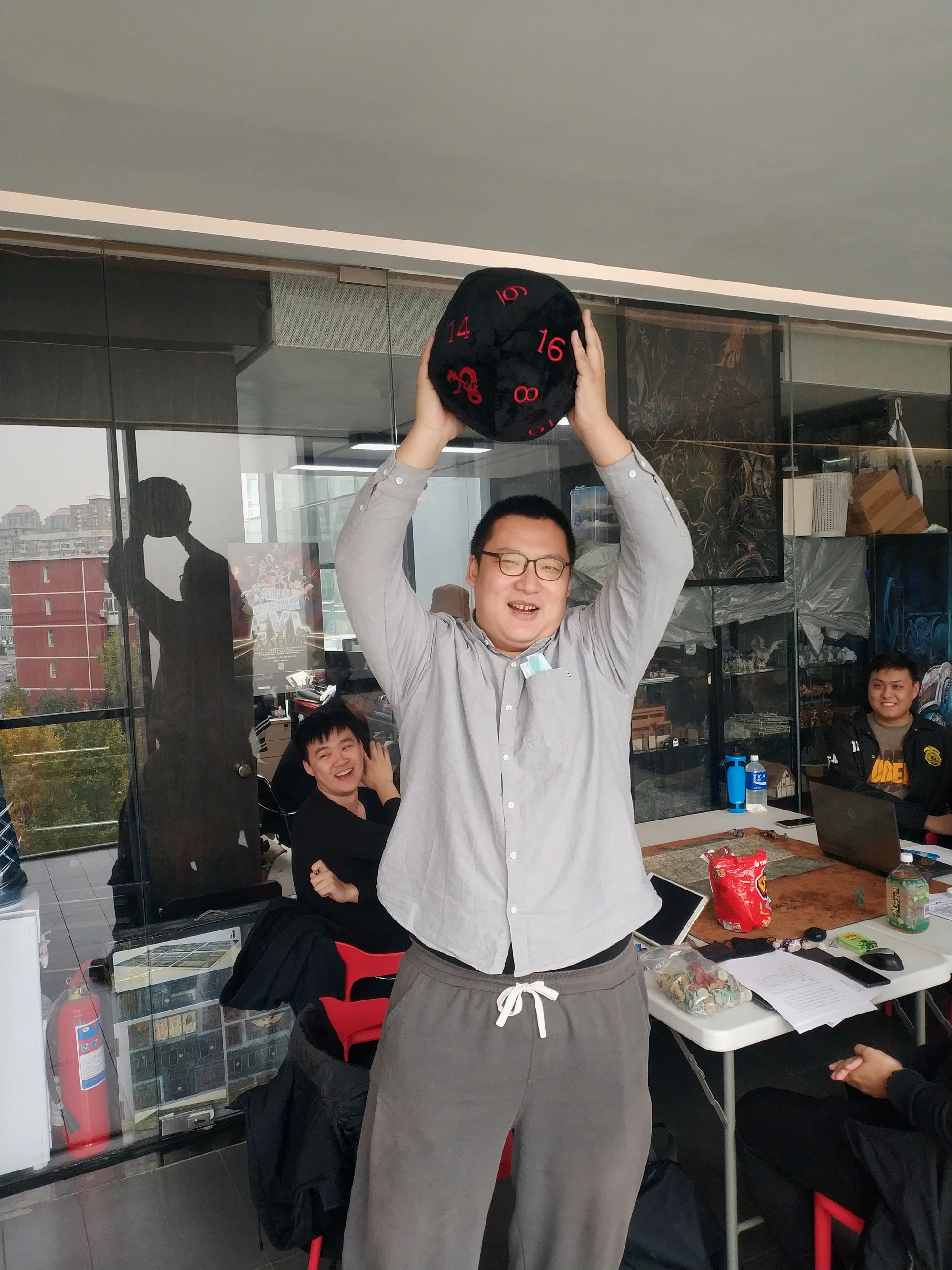 一位新人主持人拿到了他的社群活动奖励——毛绒骰子!