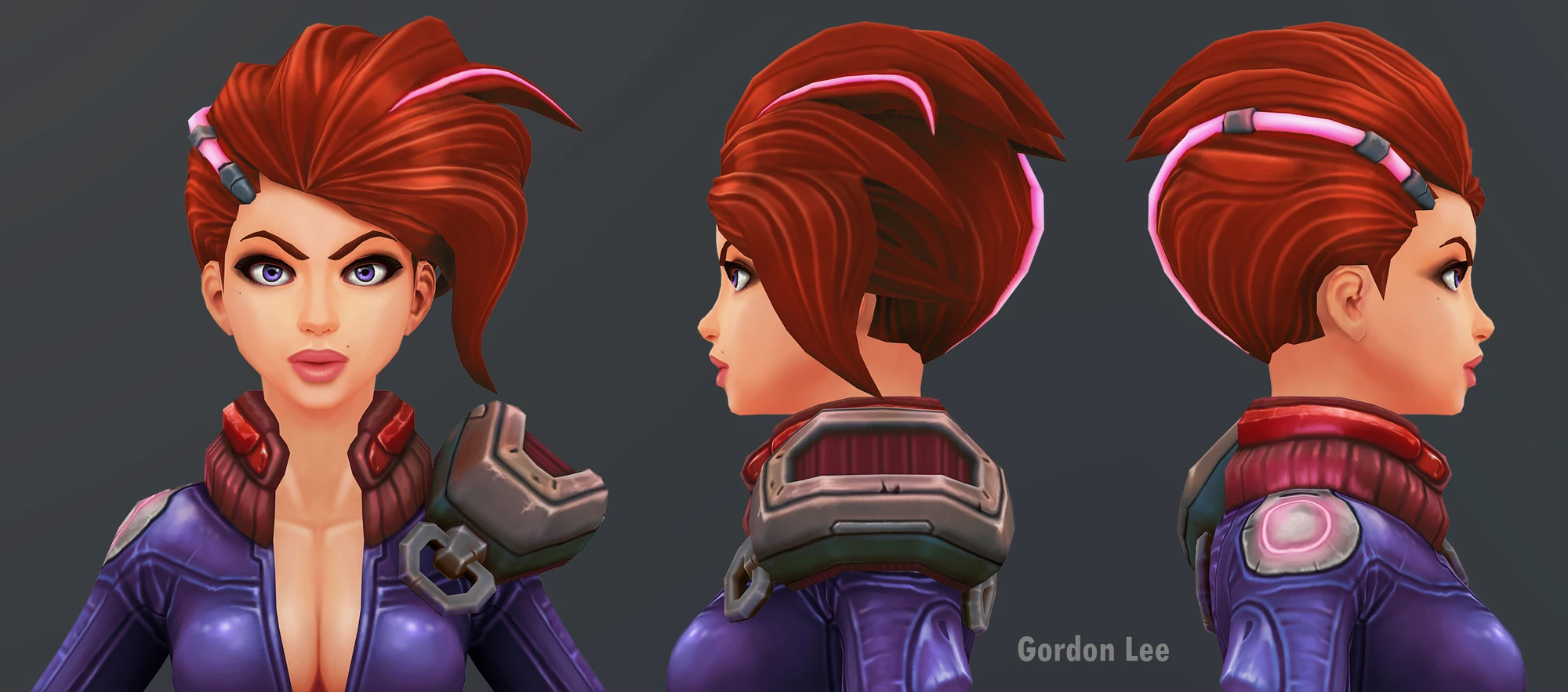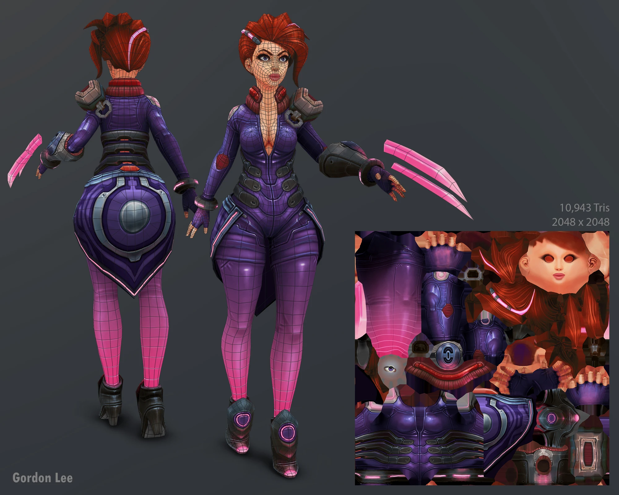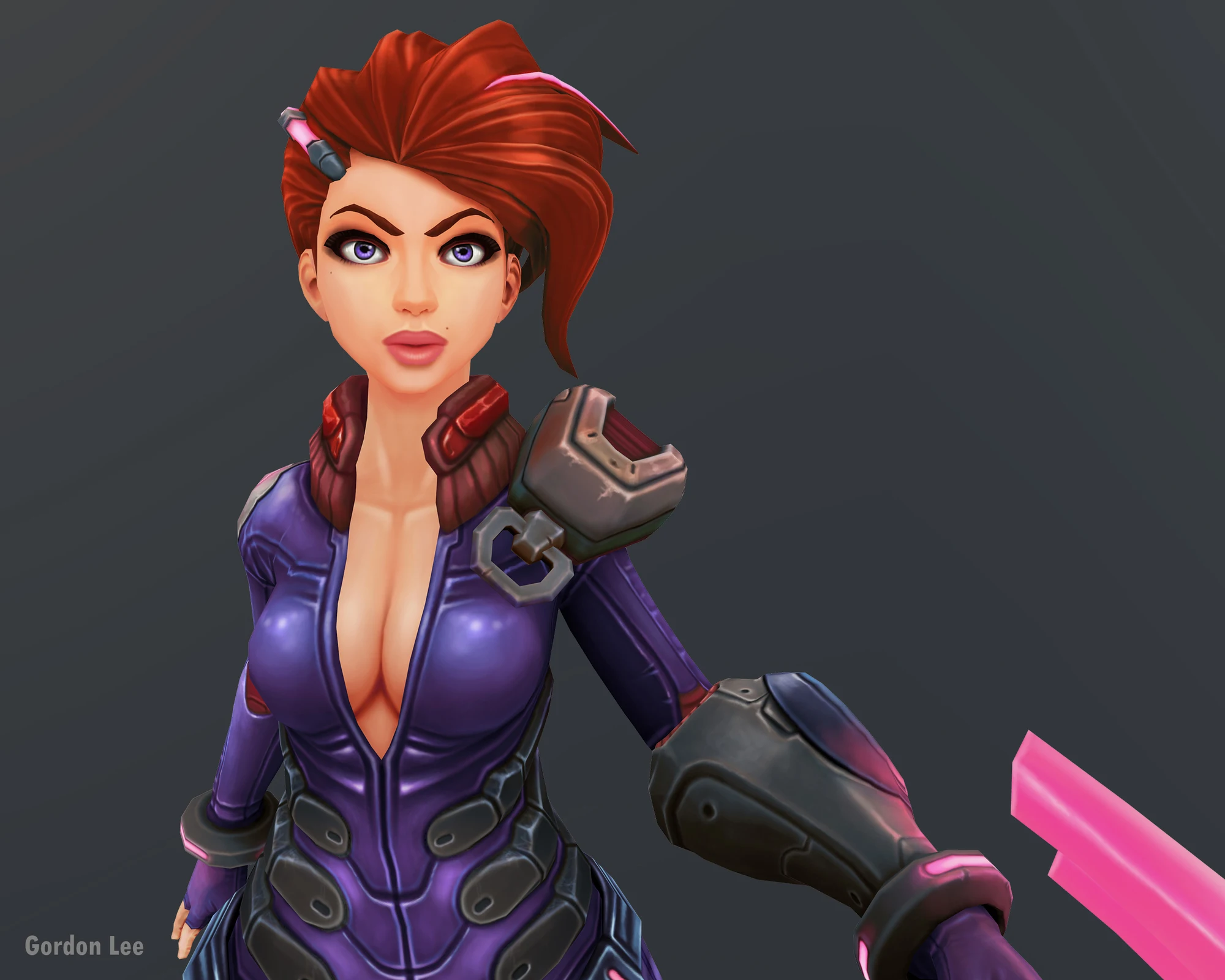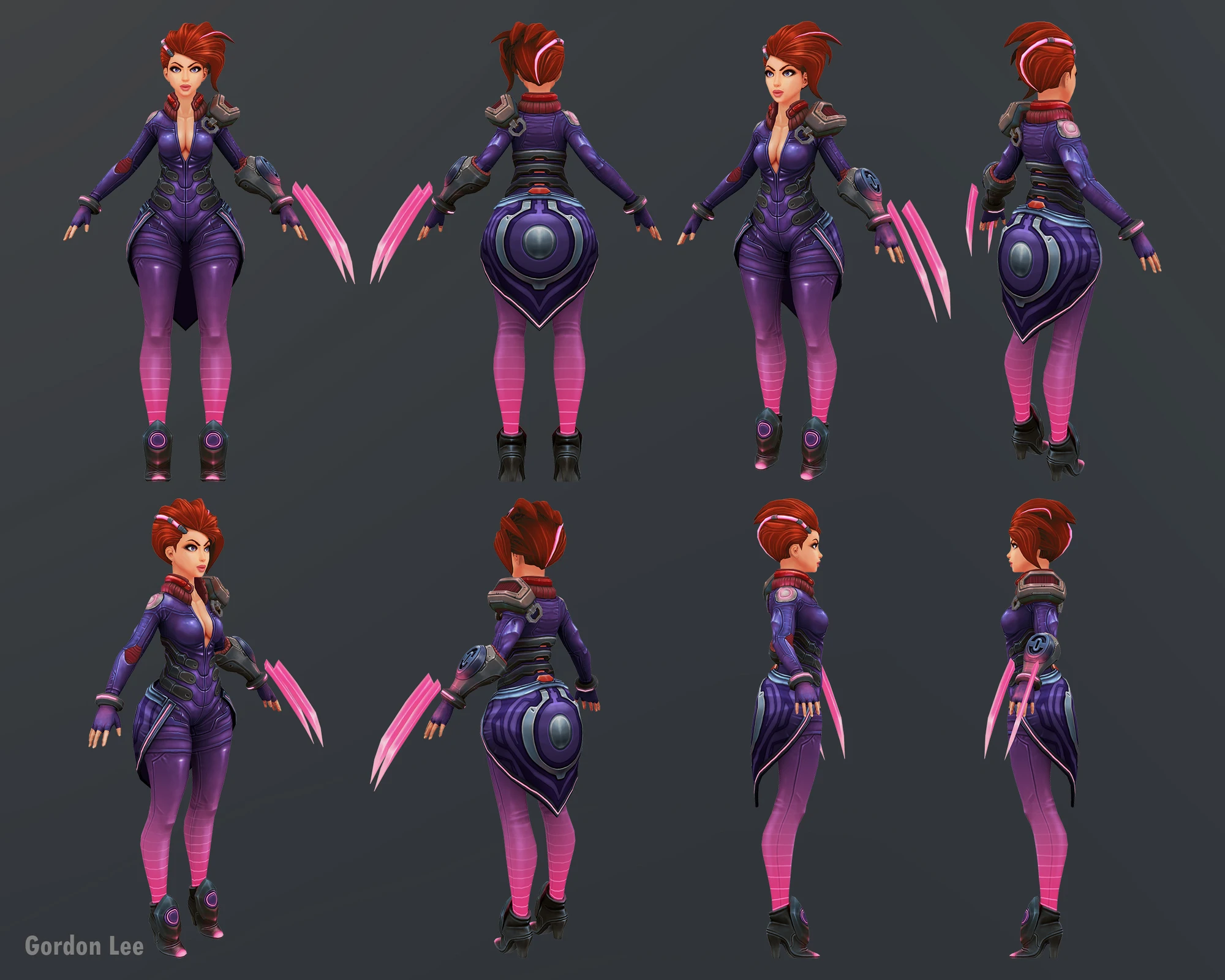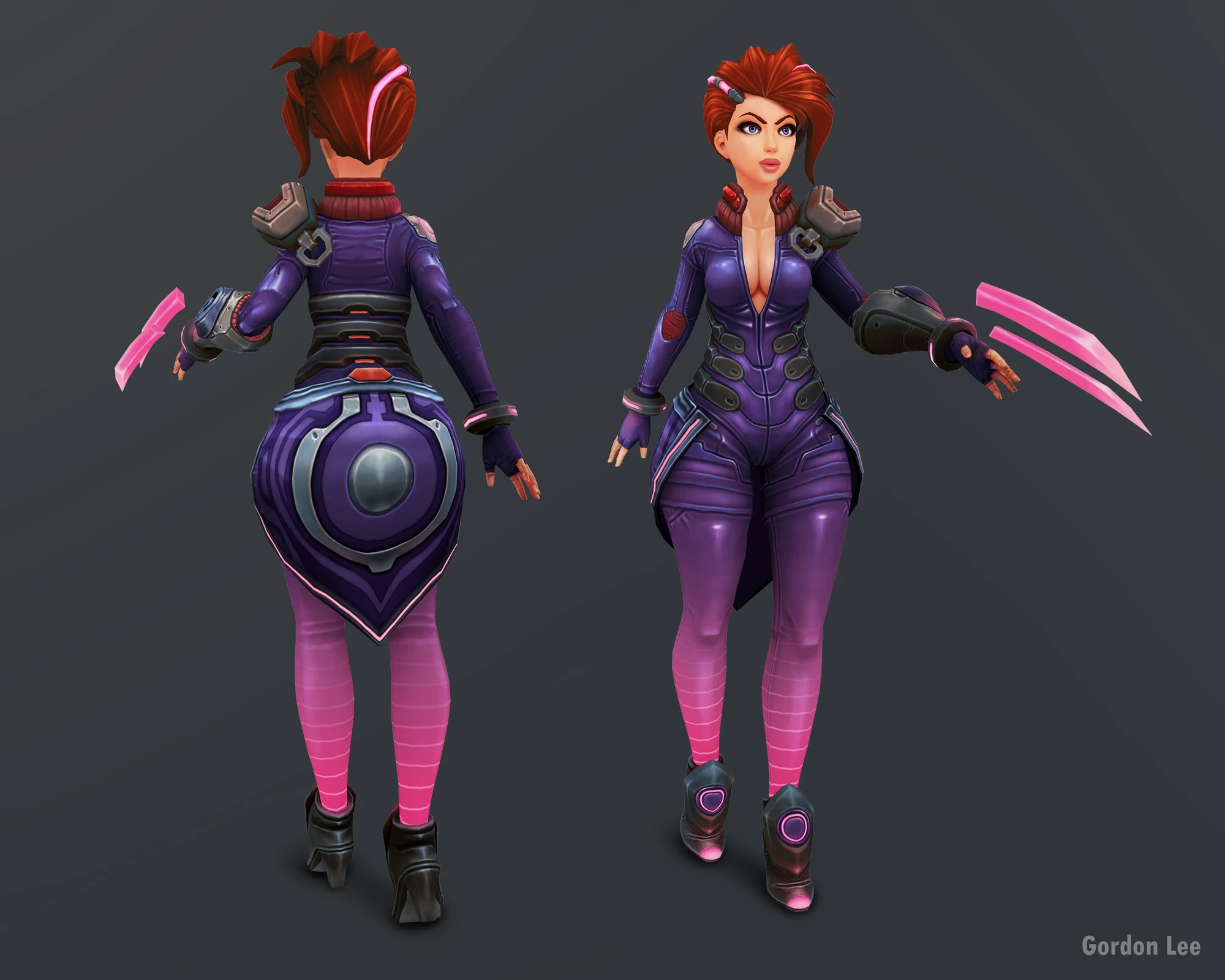 粉色利刃 - 风格化女刺客游戏角色模型。