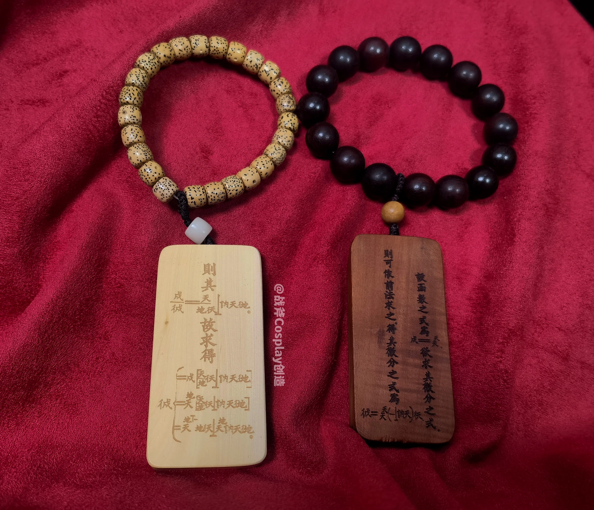 将这些文字,刻在了黄杨木和陈化枣木老料上,做成了一种平安牌的挂件。感觉也是一种将科学理性,跟传统相结合的方法了。