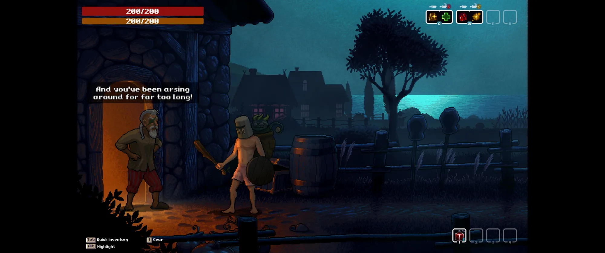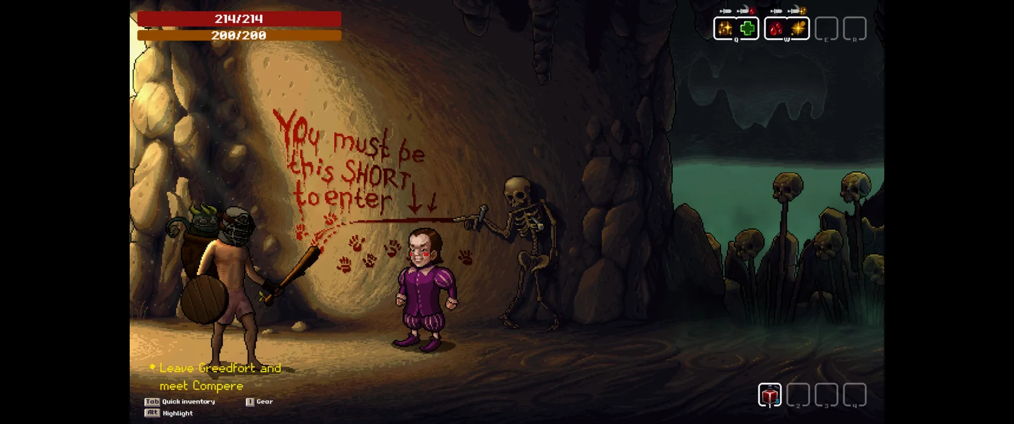 你扮演一个戴着水桶头盔穿着粉色爱心裤衩背着话痨小怪物的倒霉鬼四处冒险,然后很快就会发现整个世界都没什么好人要么想要你命要么想坑你钱,连游戏系统都忽悠你(?