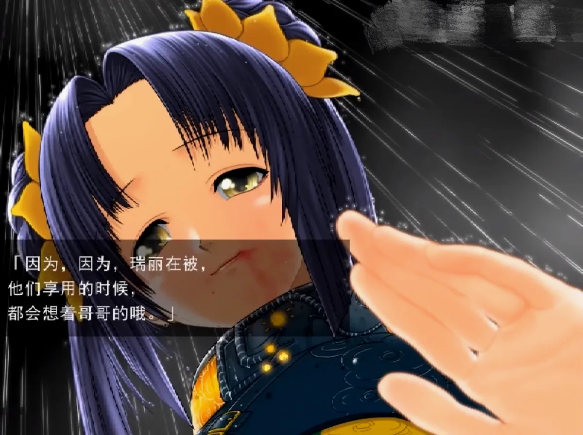 一个字,太古早了……我最早是冲着猎奇去的,了解完剧情后没有玩完,实在不记得妹妹的发病相关剧情在哪里了,只找了一张经典视角的CG图,虽说记不清,但上面两部和这作发病的妹妹的病情一对比,那比小樱和圆神之间差别还要大多了~不过这个画风太古早了安利不来,感兴趣可以看看剧情解说,是影响到FATE、沙耶和C+C的神级作品,顺便可以听听神级OP 《腐り姫の伝説》。
