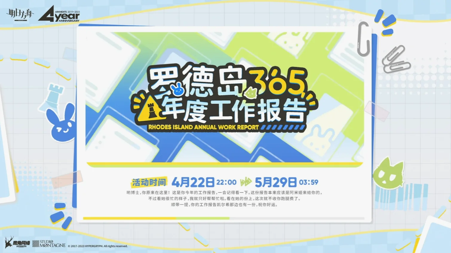 9.罗德岛“365”年度工作报告将于直播结束后开启。