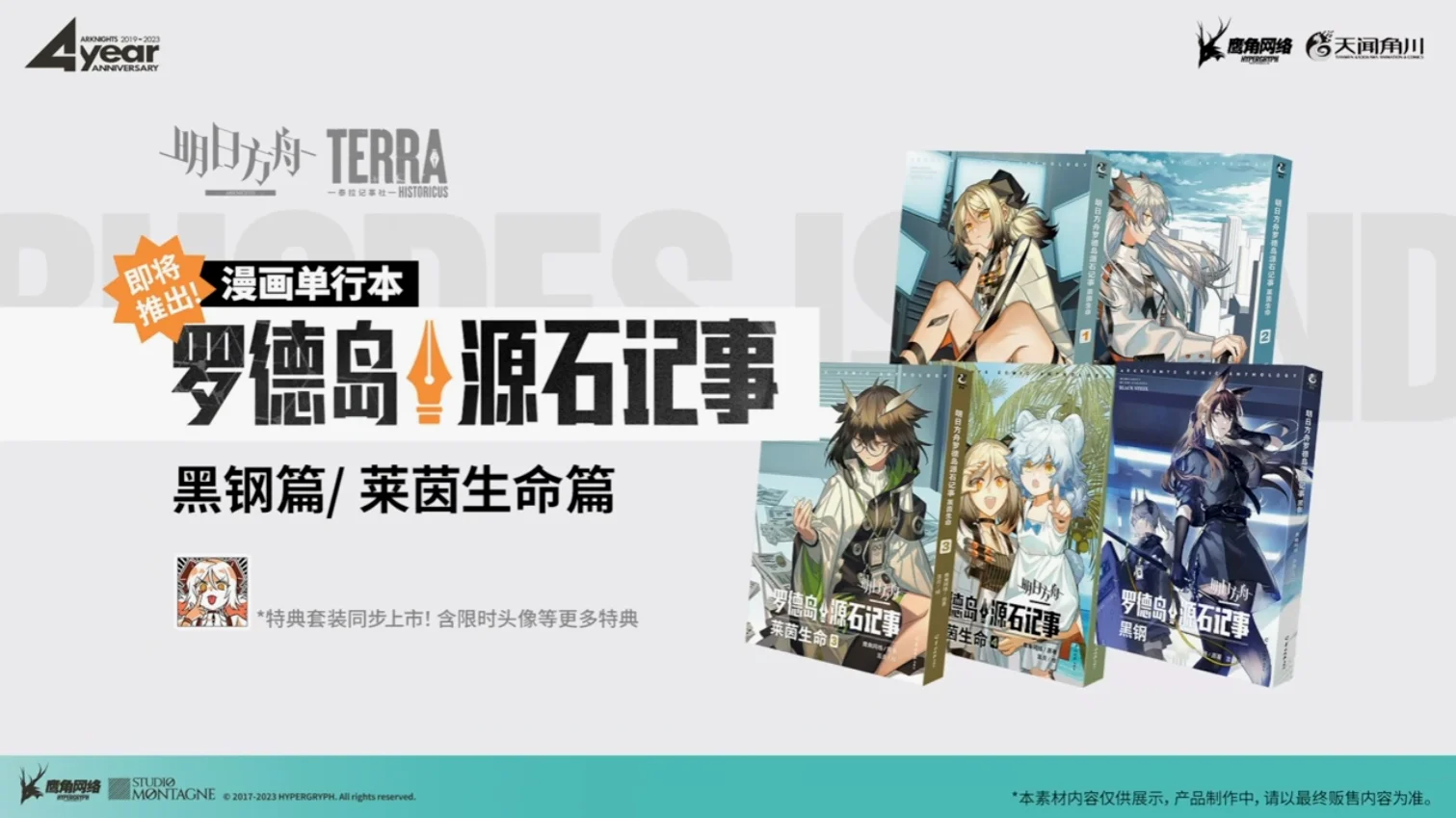 4.老的漫画《源石记事·黑钢》、《源石记事·莱茵生命》、《罗德岛厨房·回甘》计划推出单行本。