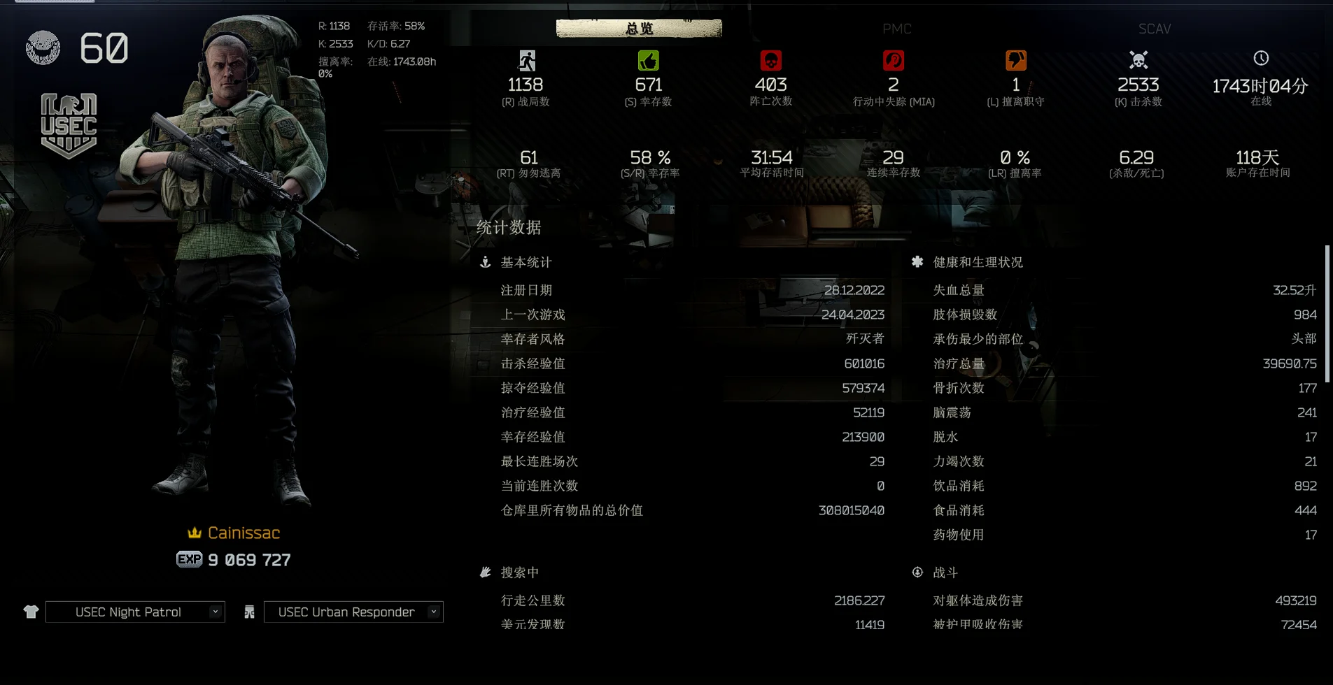 拿到了最大保险箱3*4,买齐了黑红蓝绿紫钥匙卡,还整完了灯塔任务线,总之感觉是比较疲惫,最后还是放下了这个游戏。